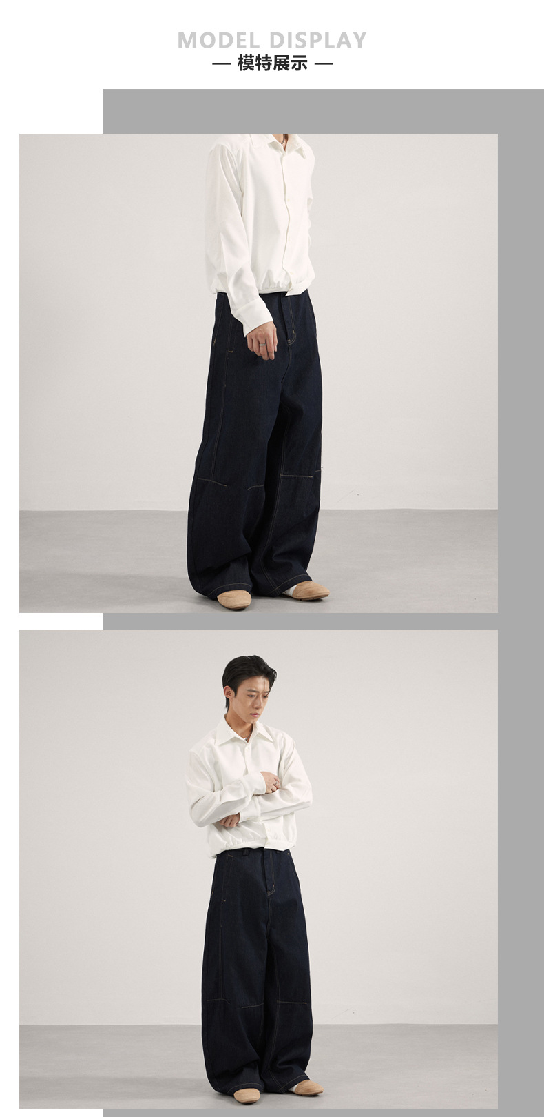 JIAMU美式高街复古原色廓形弯刀牛仔裤男女中性高级感拖地香蕉裤