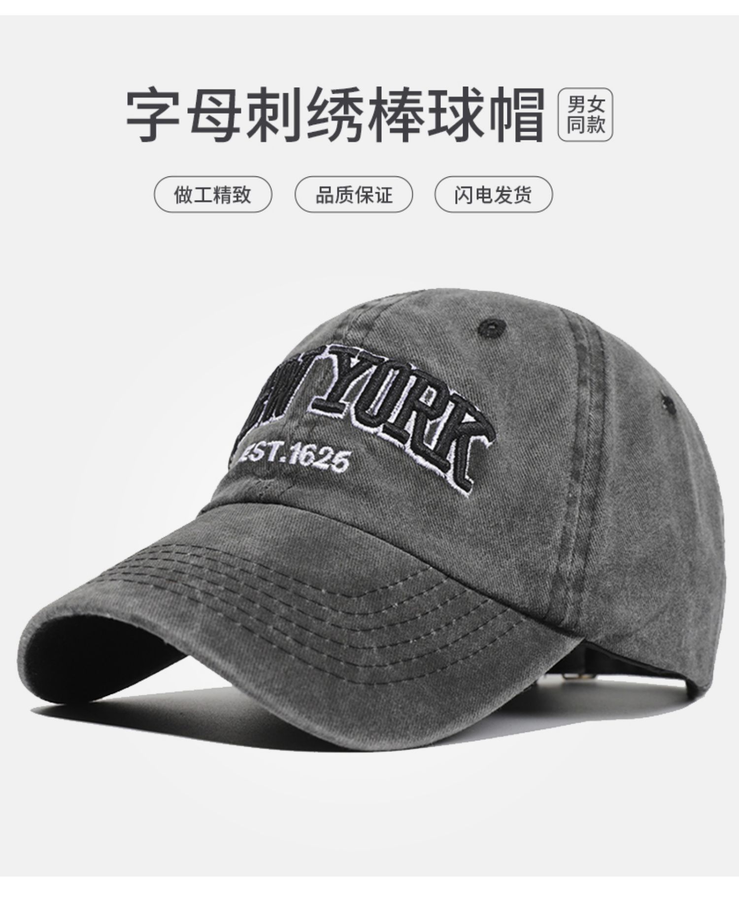 棒球帽男刺绣复古做旧水洗休闲鸭舌帽女春夏季街头百搭弯檐遮阳帽