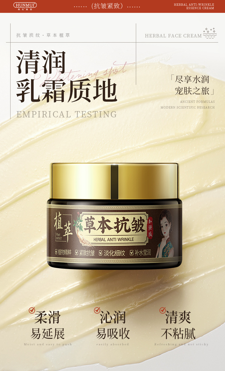韩伦美羽草本抗皱精华霜抚平细纹紧致肌肤滋润保湿草本抗皱面霜