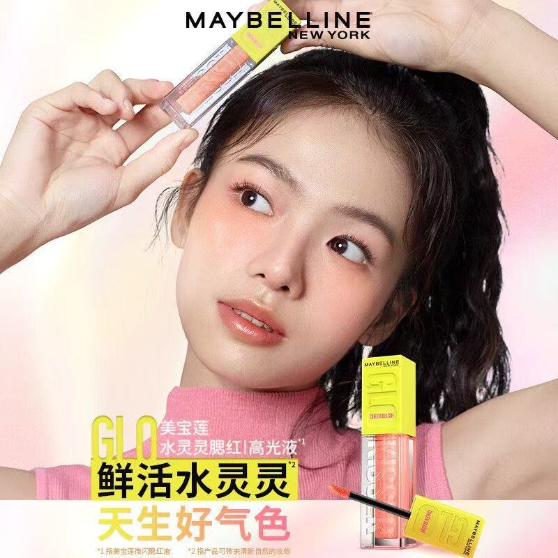 美宝莲水灵灵腮红液高光液膨胀色修容水润自然显色送女友节日礼物