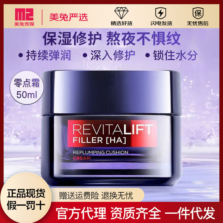 欧莱雅复颜玻尿酸水光充盈焕颜淡纹霜50ML酸熬夜面霜紧致修护补水