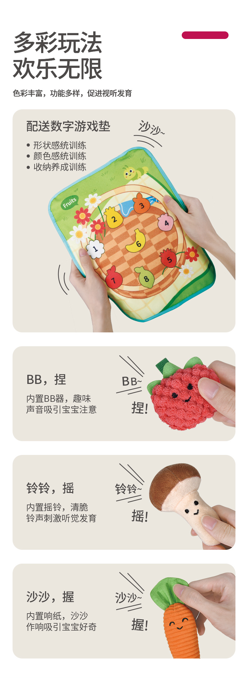 颜色 果蔬拔拔乐(内置手摇铃+响铃+BB器)袋装,小熊巴士拔萝卜【6个萝卜+4超柔巾+2响纸】袋装,1-9个数字萝卜【袋装】