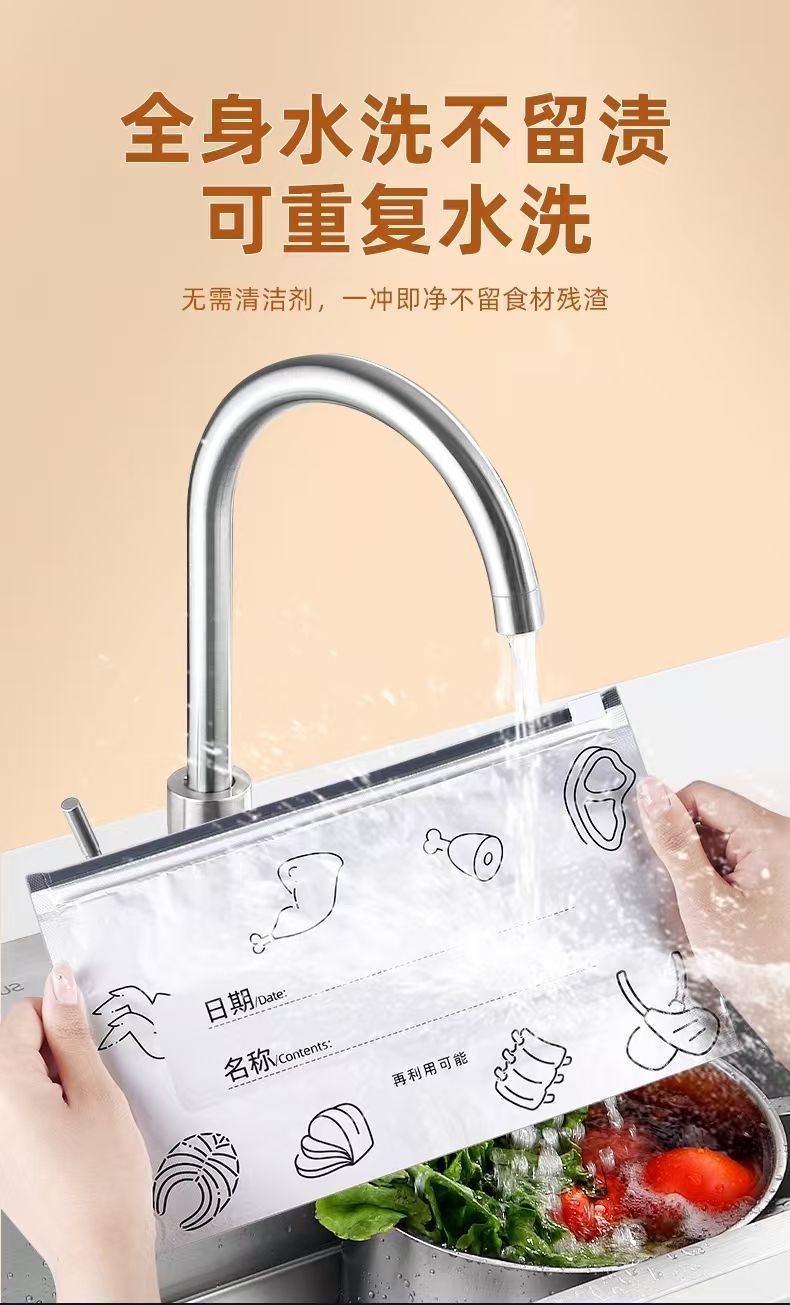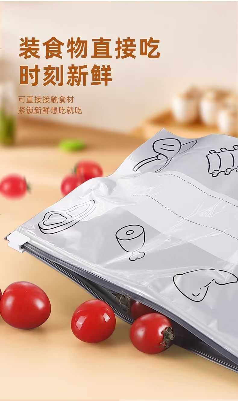 食品密封袋、二重筋密袋、家庭用増粘冷蔵庫・冷凍庫専用使い捨て鮮度保持袋