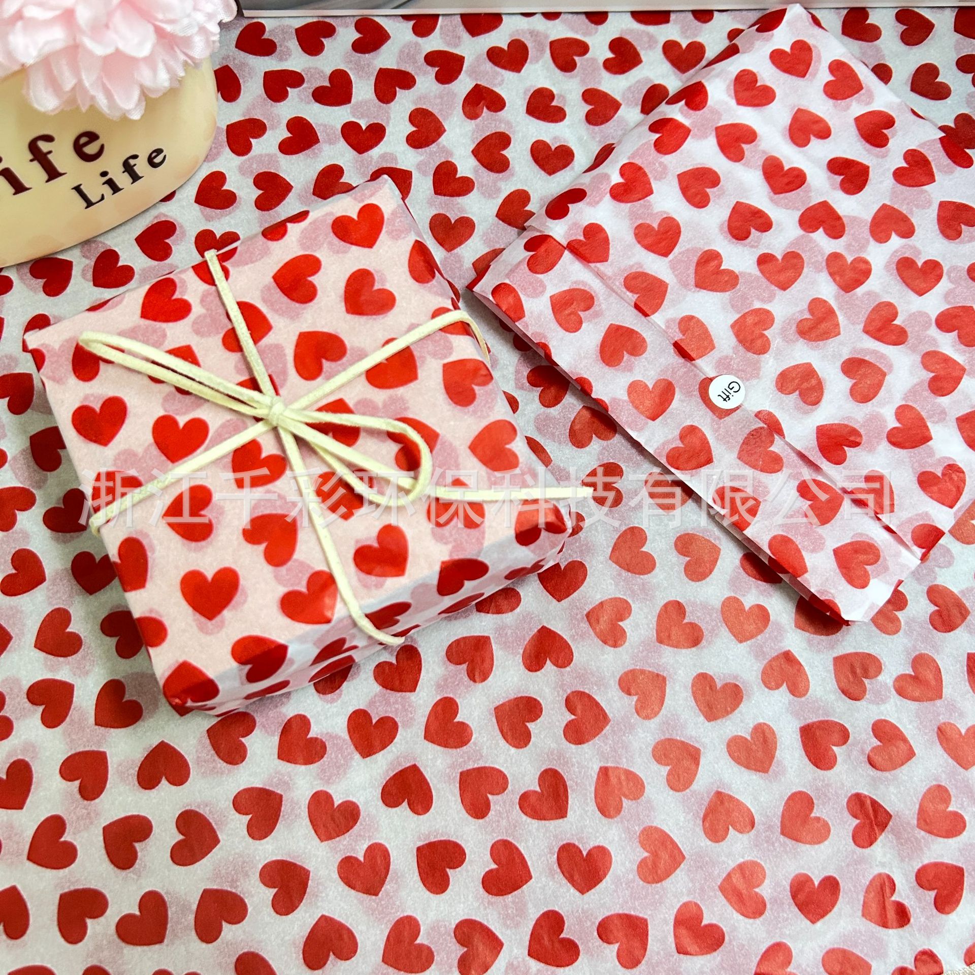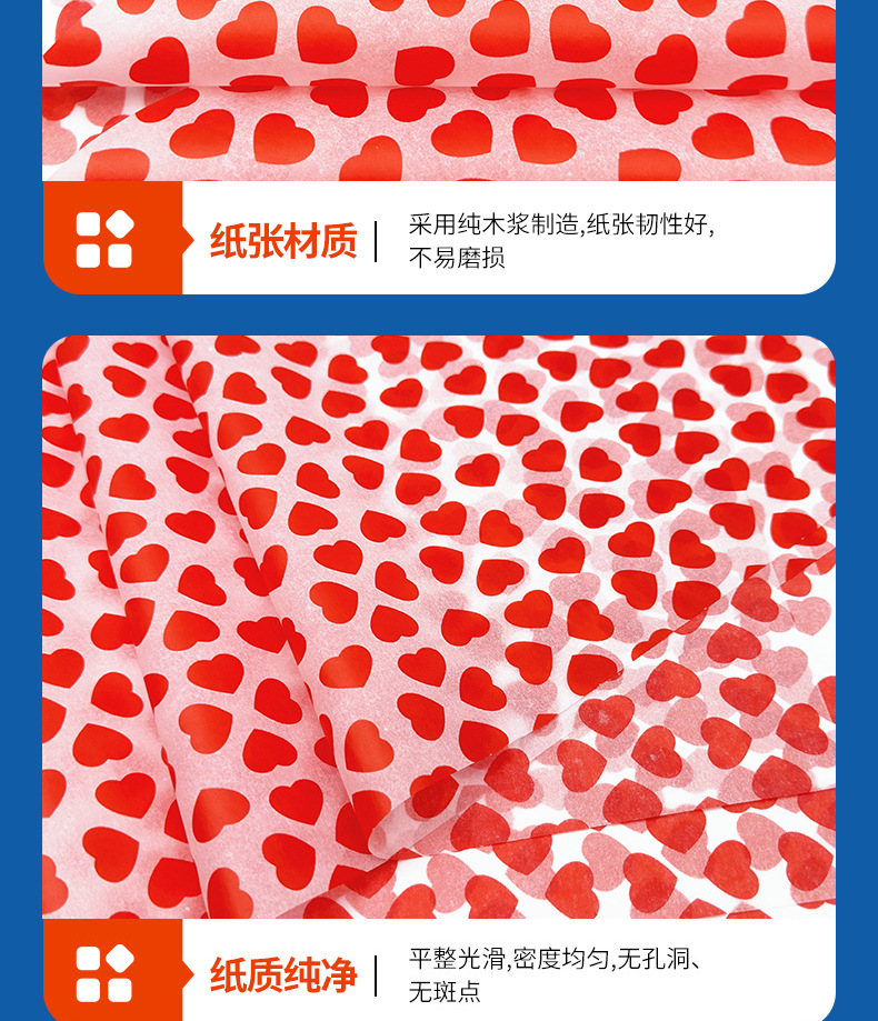 情人节爆款热销17克雪梨纸批发红色爱心礼品礼物包装纸印薄页纸