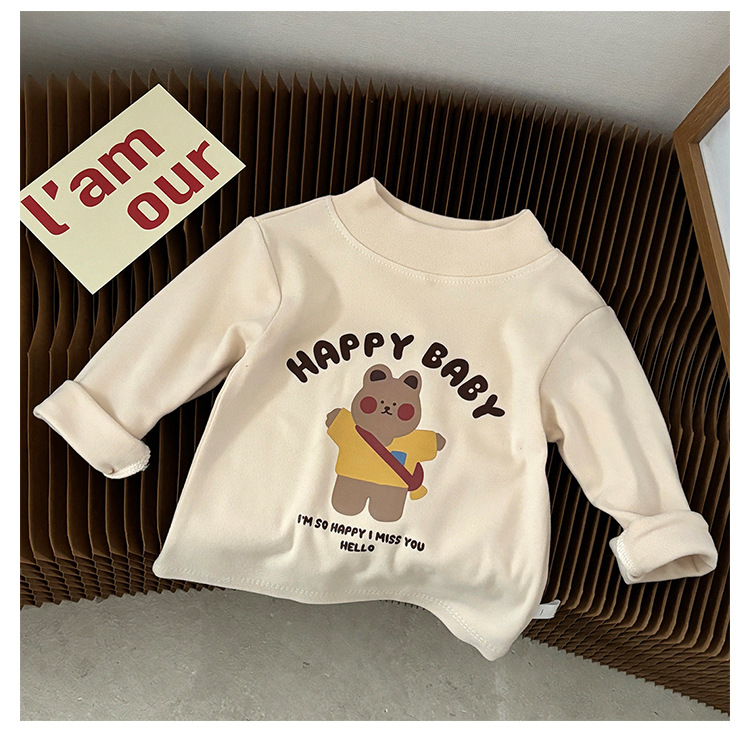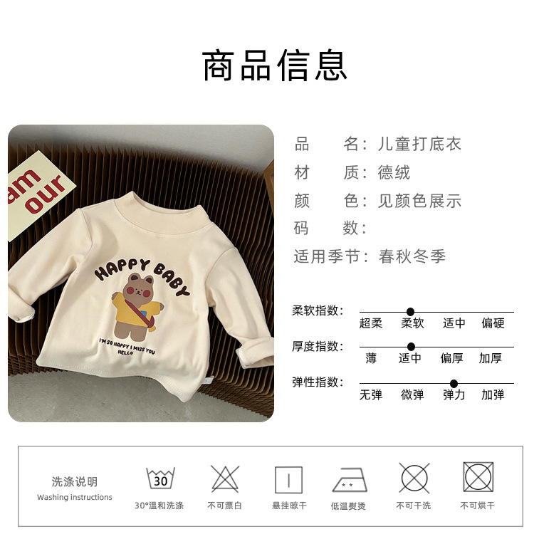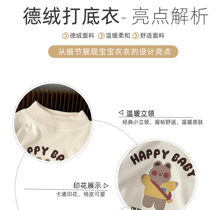 儿童打底衫长袖保暖中小童德绒单上衣春秋冬款套头衫外穿秋衣代发