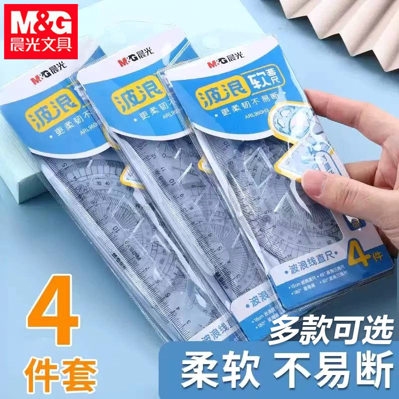 M&G晨光孔庙祈福4件套学生考试绘图套尺直尺三角尺量角器软套尺