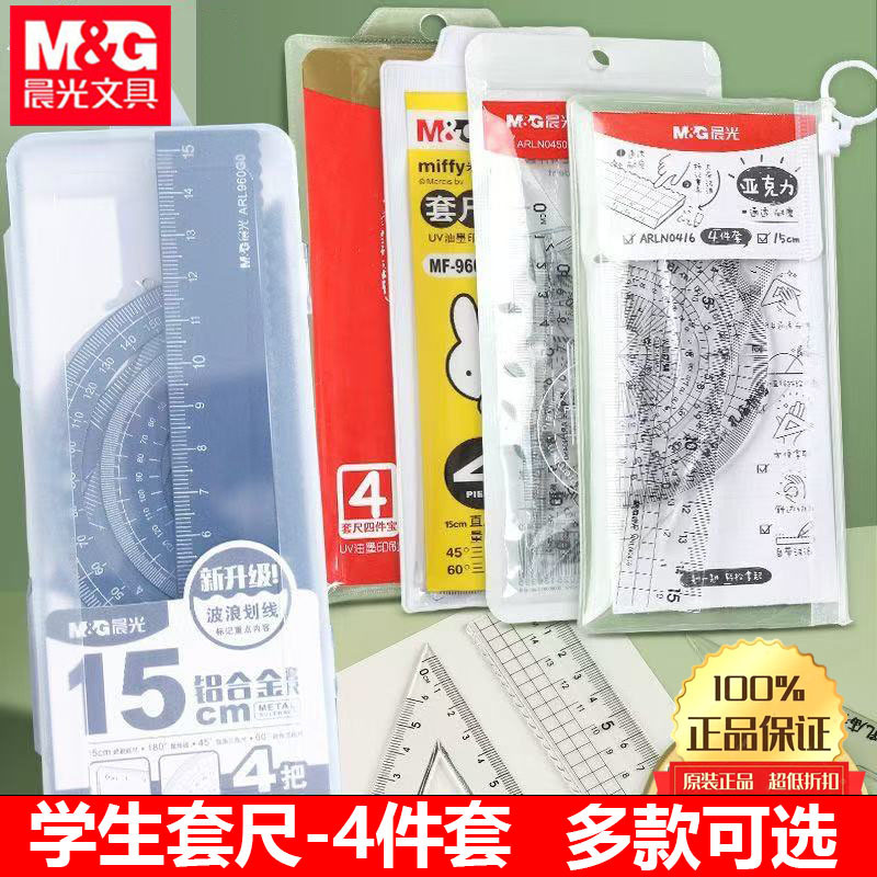 晨光文具学习考试四件套15cm直尺三角尺量角器学生用绘图测量文具