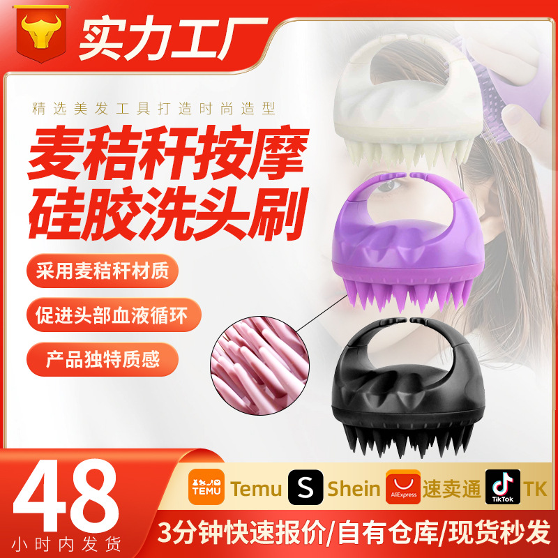 小麦わらマッサージブラシシリコーンかゆみ止め大人の頭皮マッサージシリコーンソフト歯シャンプーブラシシャンプークリーニングブラシ