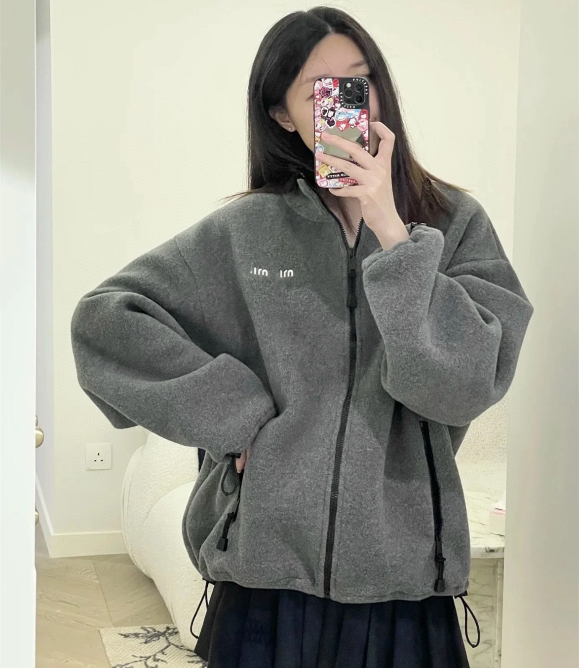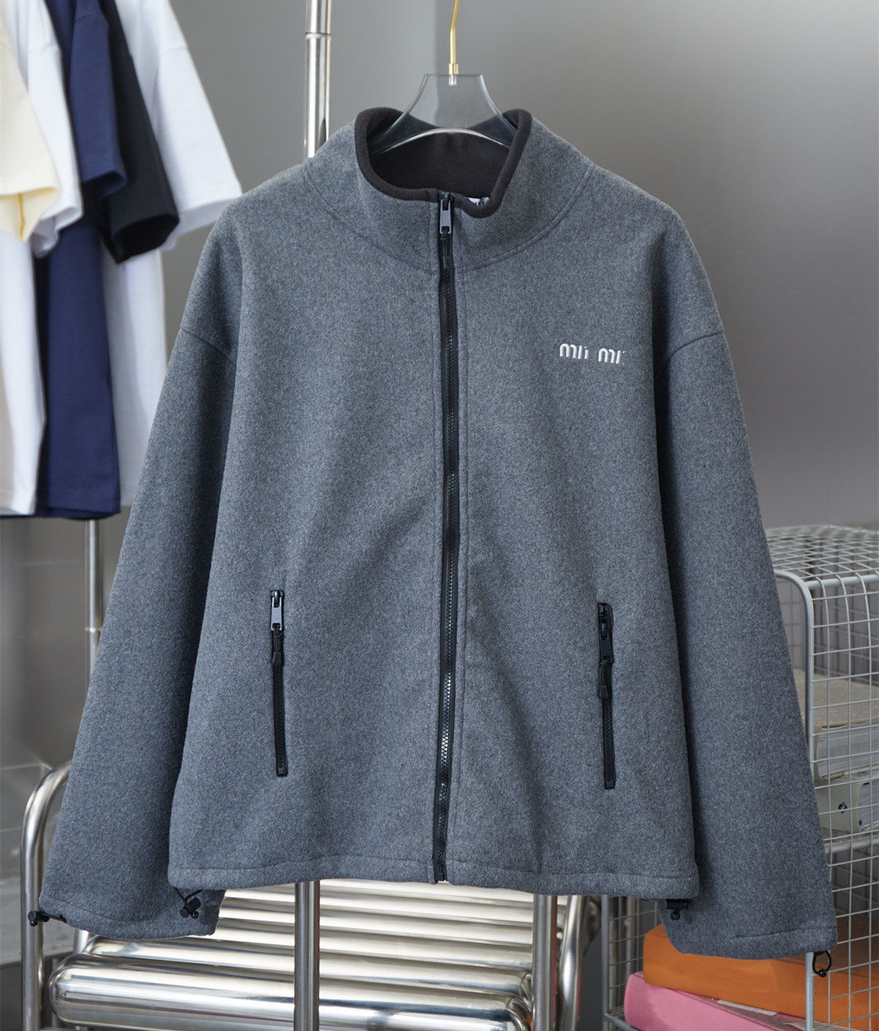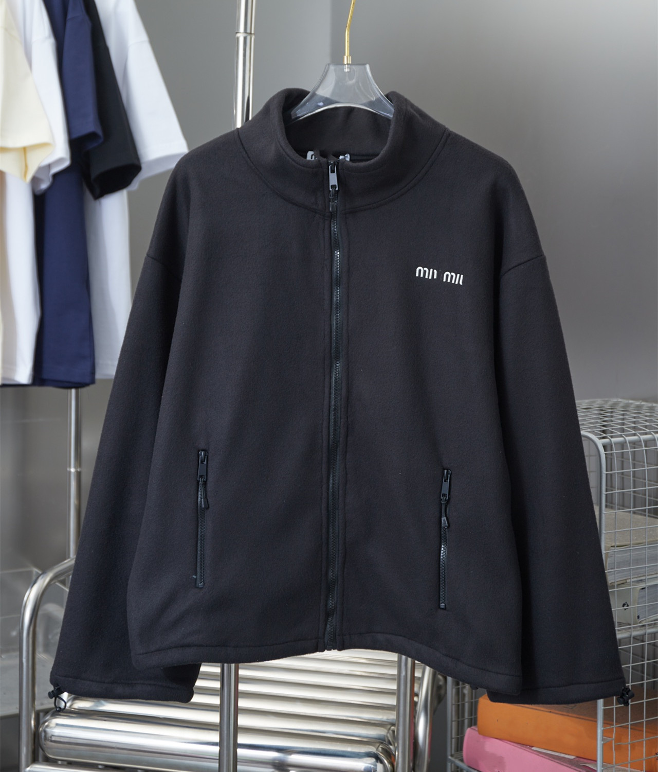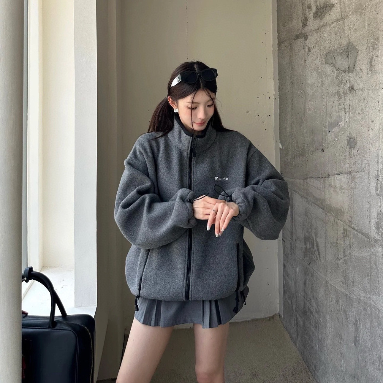南油高货原标MIU缪家夹克秋冬新款MIU徽标立领摇粒绒男女宽松外套