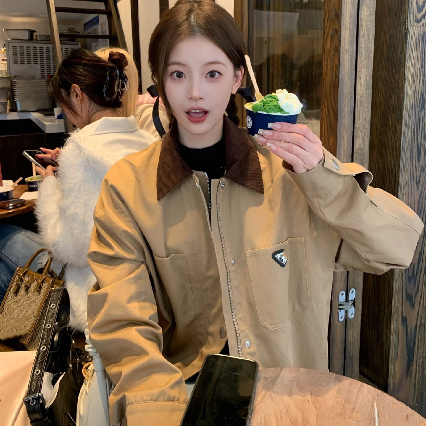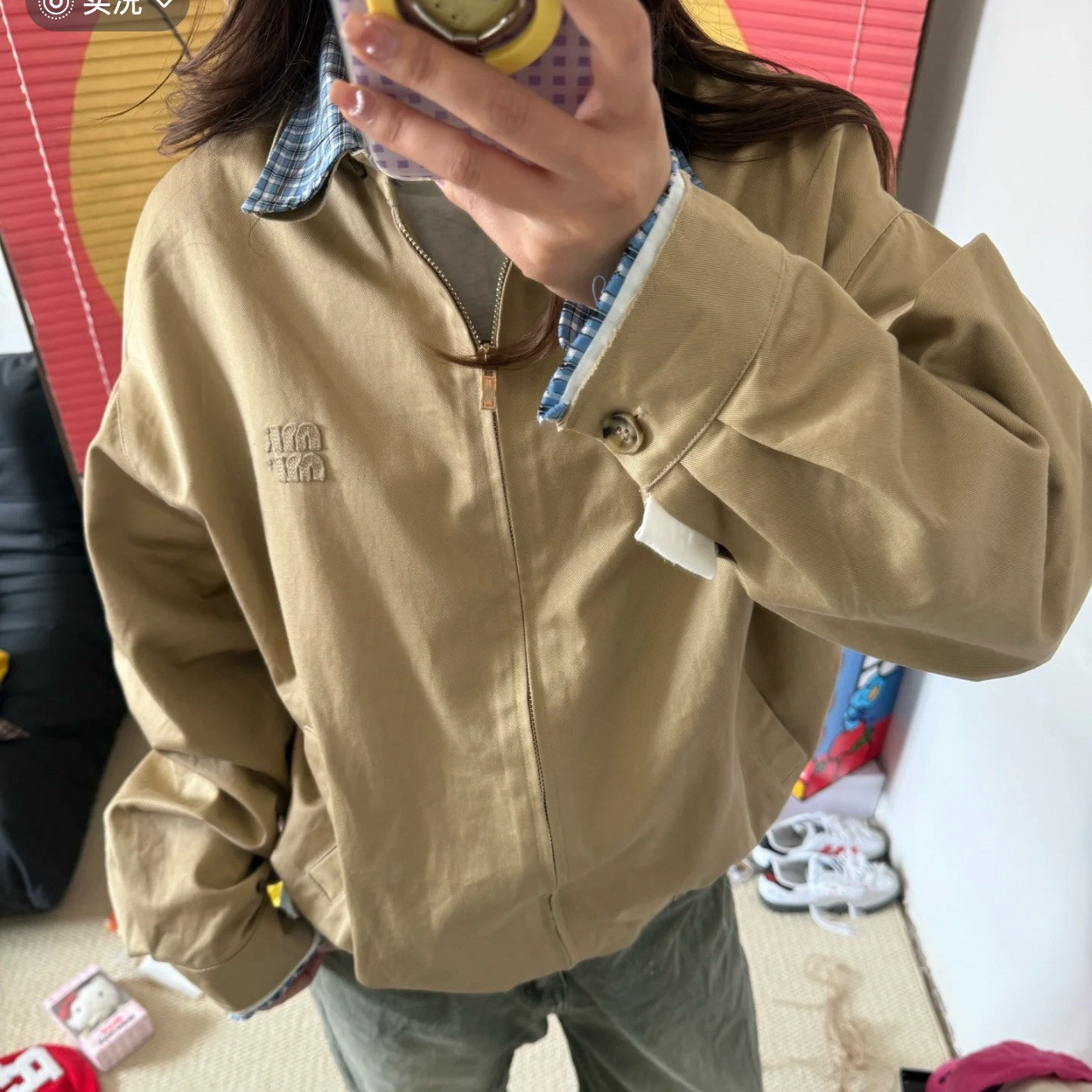 毒家版本原标MIU缪家小红书网红款格纹假两件工装夹克外套男女