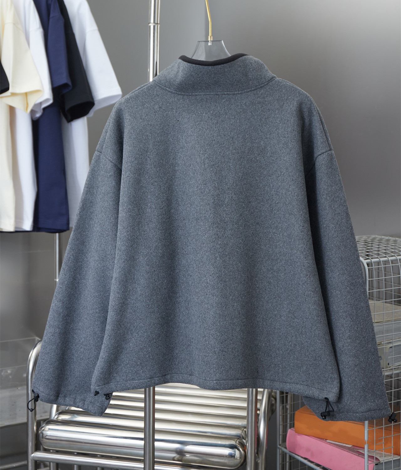 秋冬新作、文字刺繍入り麻グレーのカジュアルでゆったりとしたポーラーフリースジップアップジャケット、男女兼用、トレンド