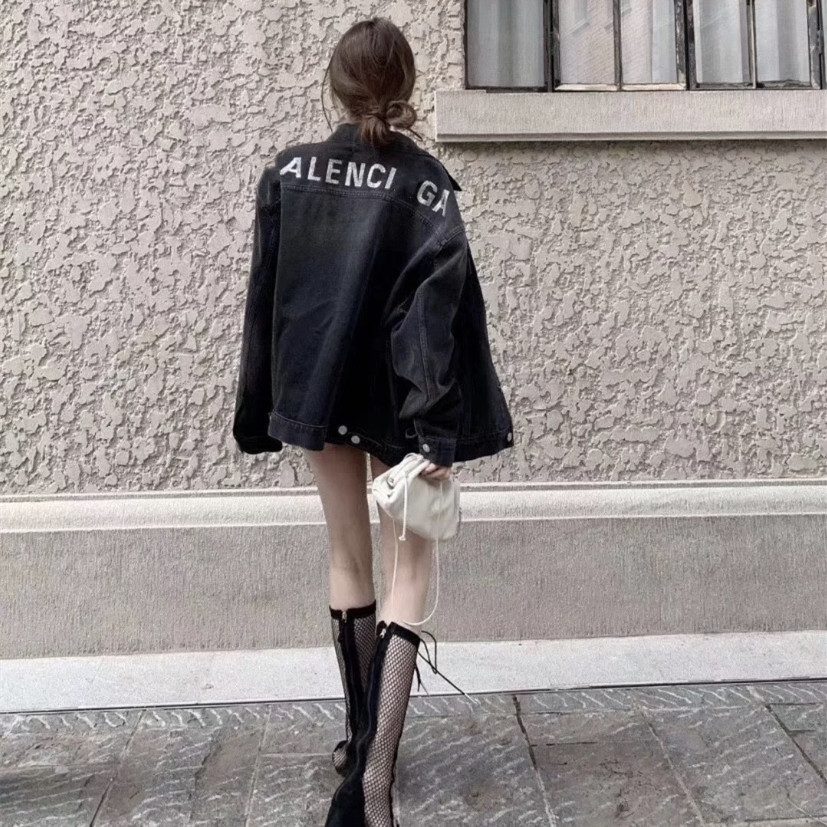 2022春夏新作高級ファッションBブランドホットダイヤモンドとラインストーンの大きな文字ロゴ付きデニムジャケット(男女兼用)の正しいバージョン