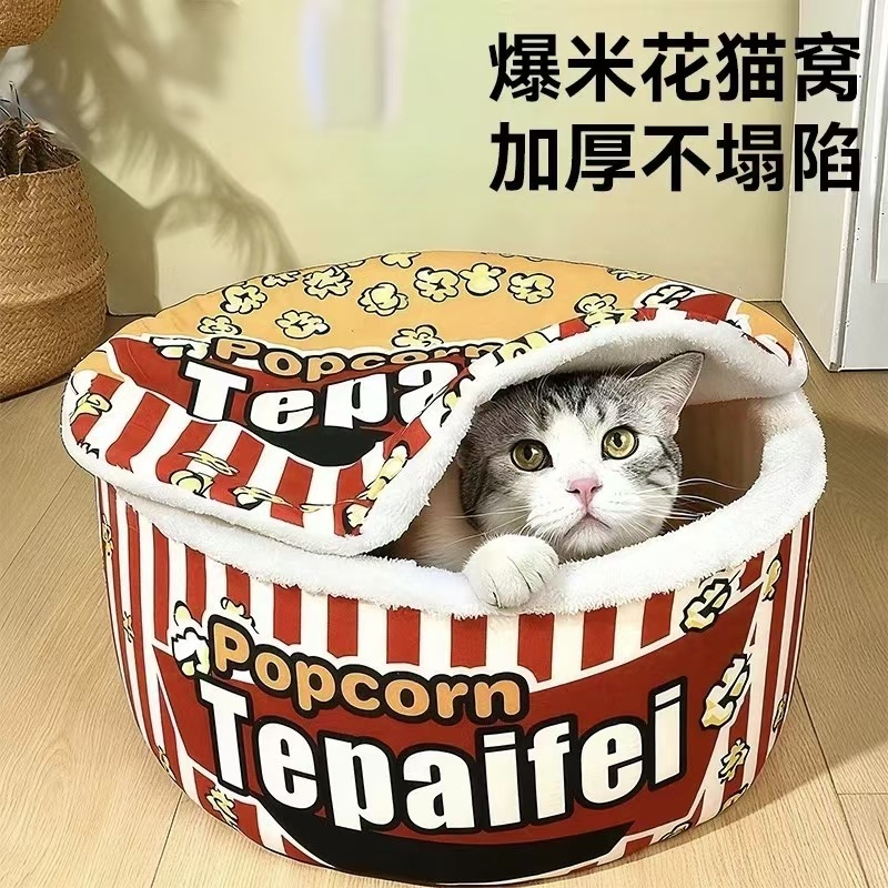 猫窝冬季保暖网红爆米花猫窝蒙古包可拆卸泡面桶窝猫窝窝防冻保暖