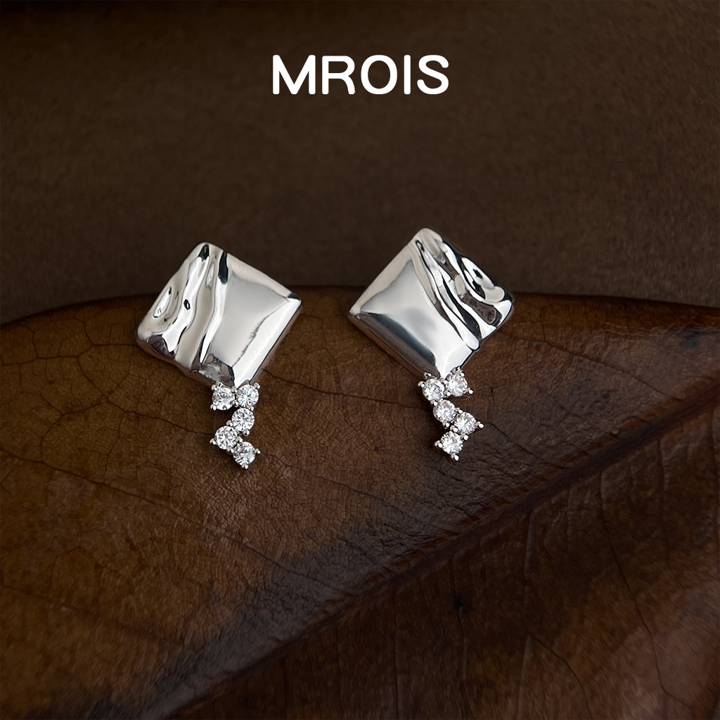 原创厚镀真金几何切面长方形锆石耳钉小众极简s925银针冷淡风耳饰