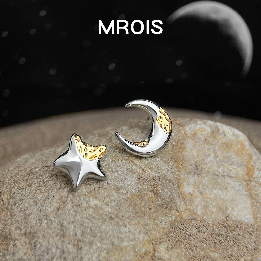 オリジナル厚めの二色18Kゴールド星月ジルコンピアス 個性的な軽贅沢ABタイプイヤリング ニッチデザインイヤリング