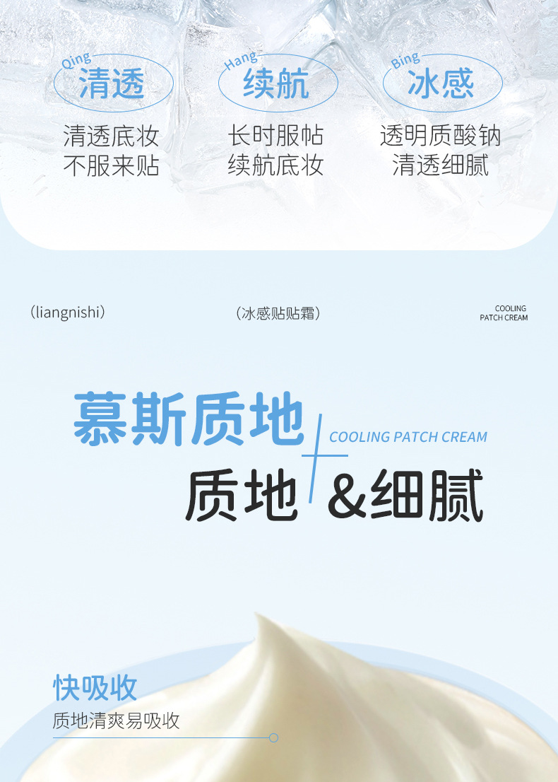 靓妮诗冰感贴贴霜自然清透补水保湿面霜持久不易卡粉贴贴霜妆前乳