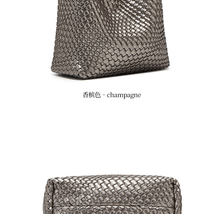 枪枪同款高级感手工编织香槟金色中号水桶包腋下单肩包手提托特包