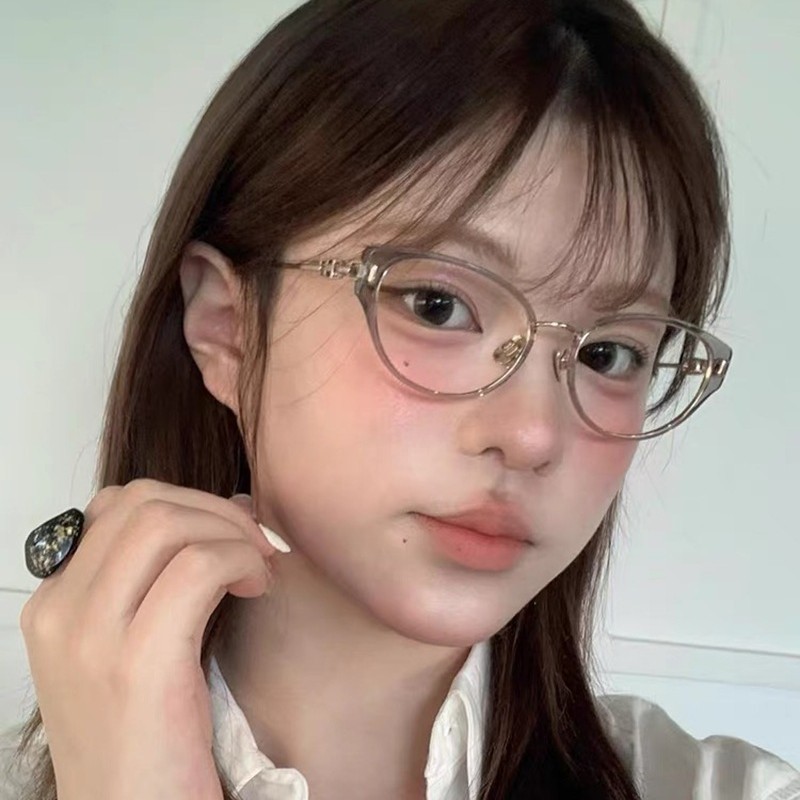 韩系纯欲风素颜高智感猫眼茶色眼镜女素颜可配近视防蓝光平光眼镜