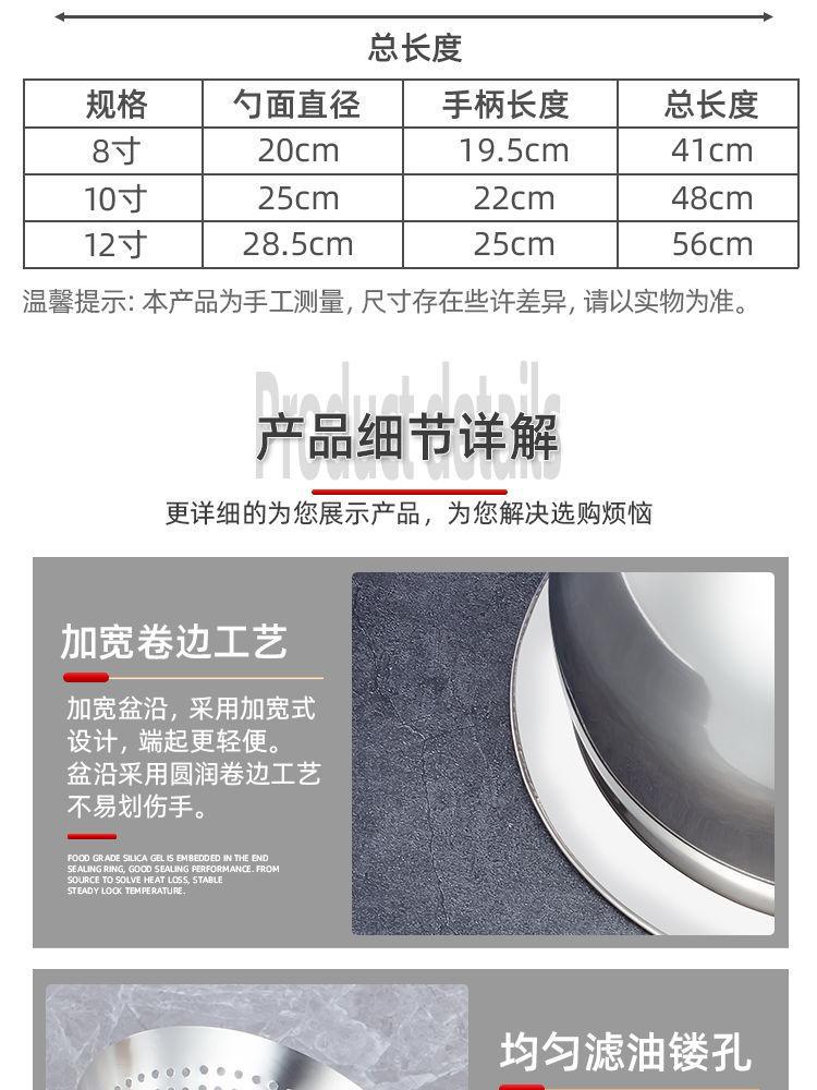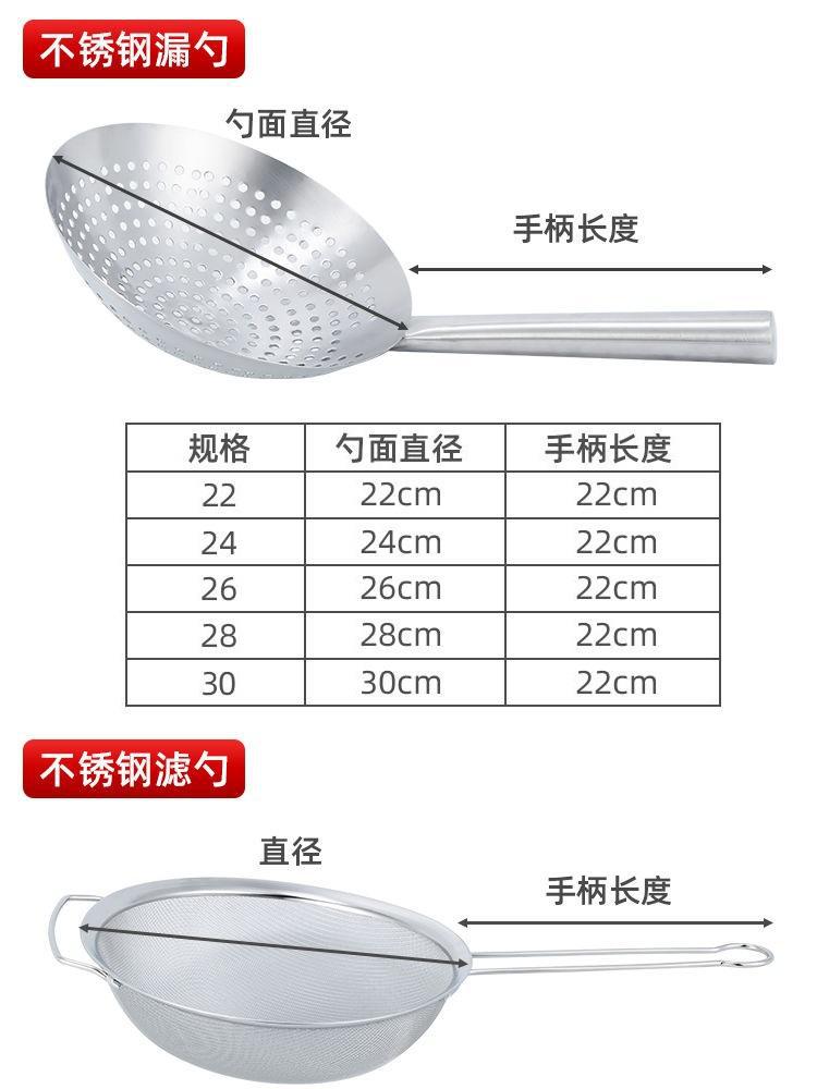 规格 特厚漏勺【22cm】(家用款),特厚漏勺【24cm】(家用款),特厚漏勺【26cm】(家用款),特厚漏勺【28cm】(家用款),特厚漏勺【30cm】(家用款),漏勺+油盆+密网+盖子【22cm】(家用款),漏勺+油盆+密网+盖子【24cm】(家用款),漏勺+油盆+密网+盖子【26cm】(家用款),漏勺+油盆+密网+盖子【28cm】(家用款),漏勺+油盆+密网+盖子【30cm】(家用款)