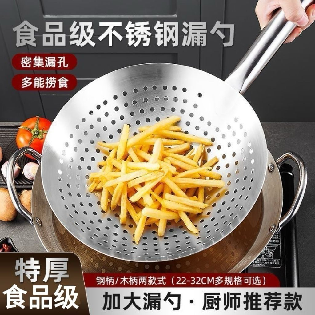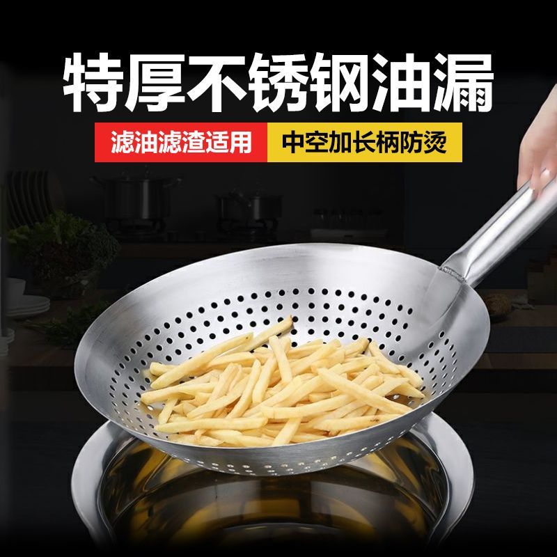 不锈钢漏勺厨师油鼓漏厨房捞勺加厚油炸滤油大漏勺餐厅捞面勺油漏