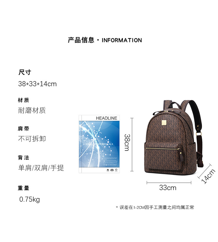 2025新款双肩包女大学生小众设计流行洋气压花通勤旅游轻便小背包