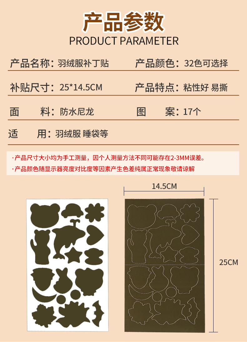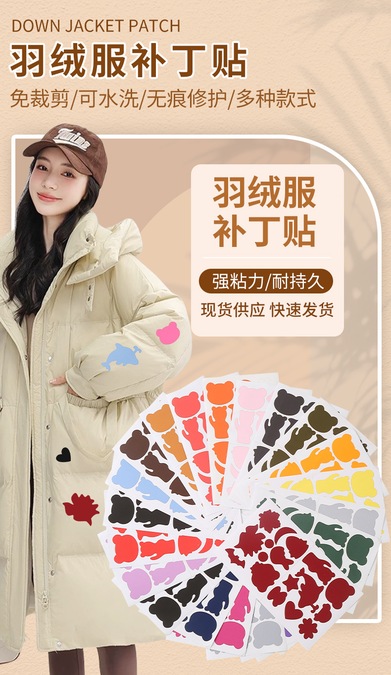 羽绒服自粘多功能补丁贴冲锋衣百搭装饰补丁布贴花图案破洞免熨烫