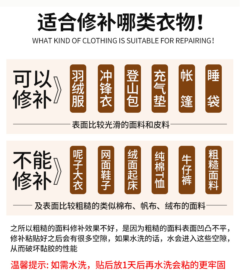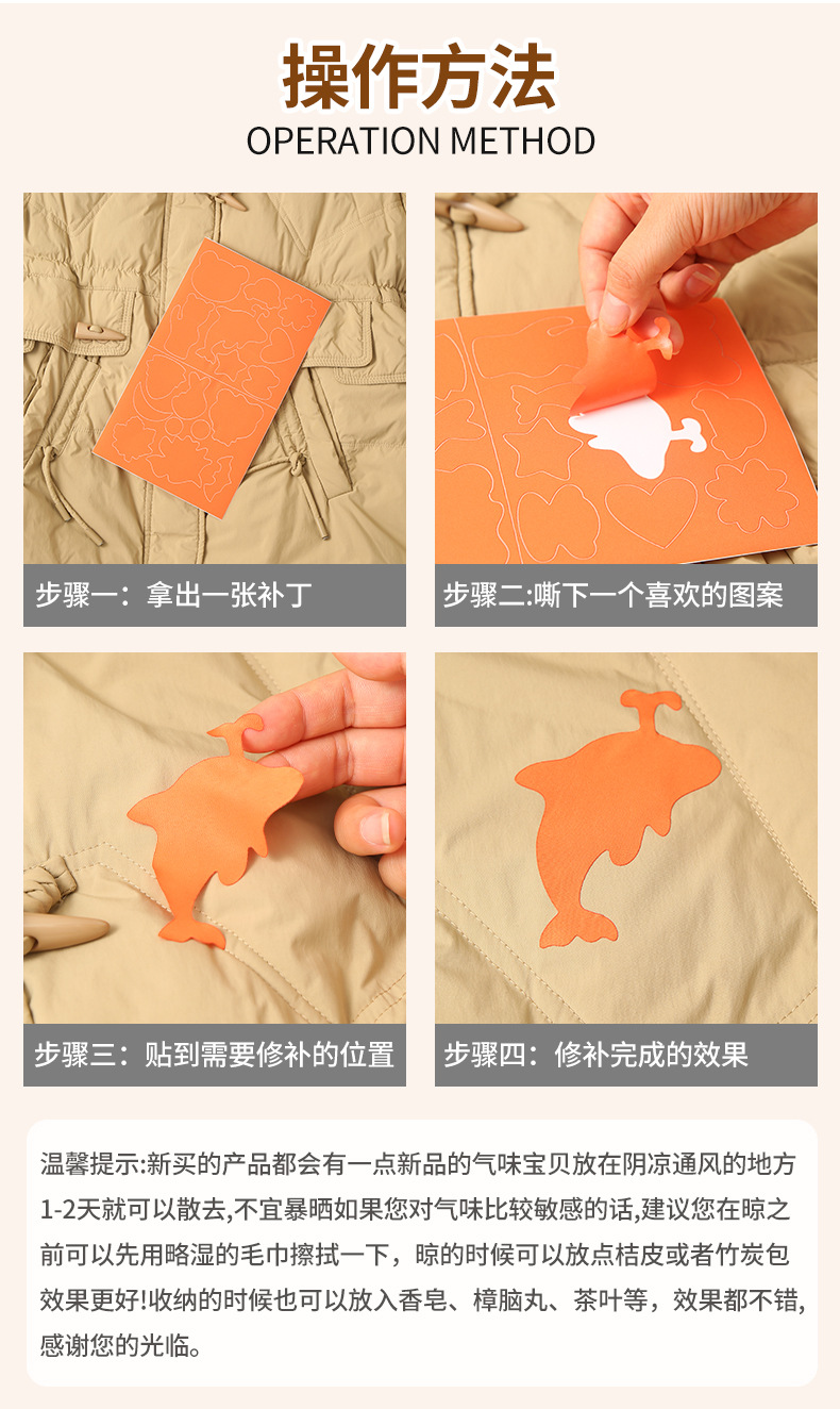 羽绒服补丁贴自粘补衣服破洞免缝无痕修复布贴防水修补贴时尚贴布