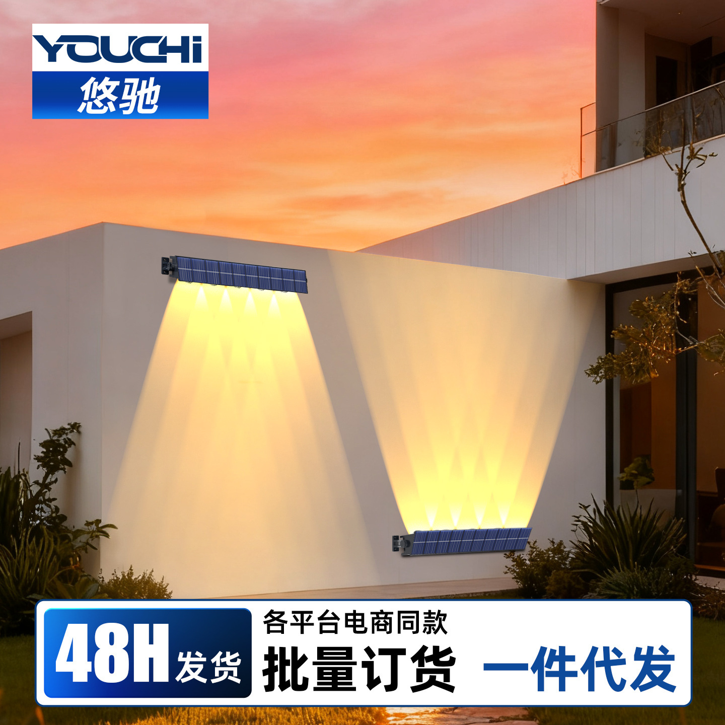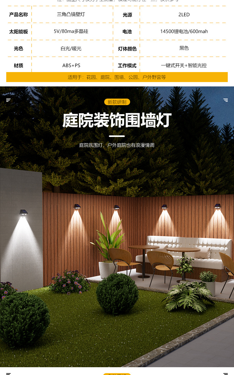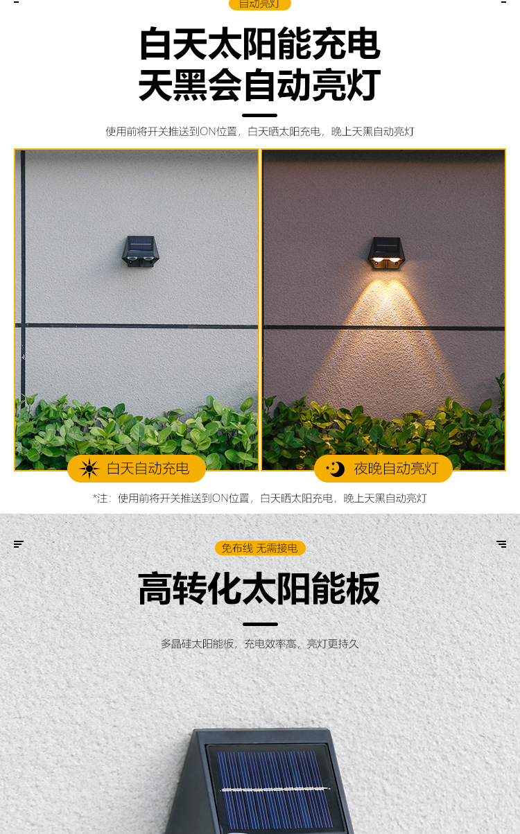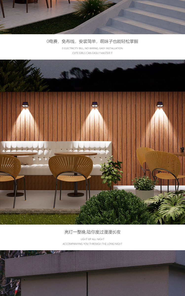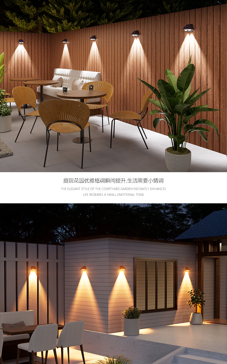 太阳能户外庭院灯室外防雨洗墙灯别墅外墙景观射灯氛围装饰壁灯