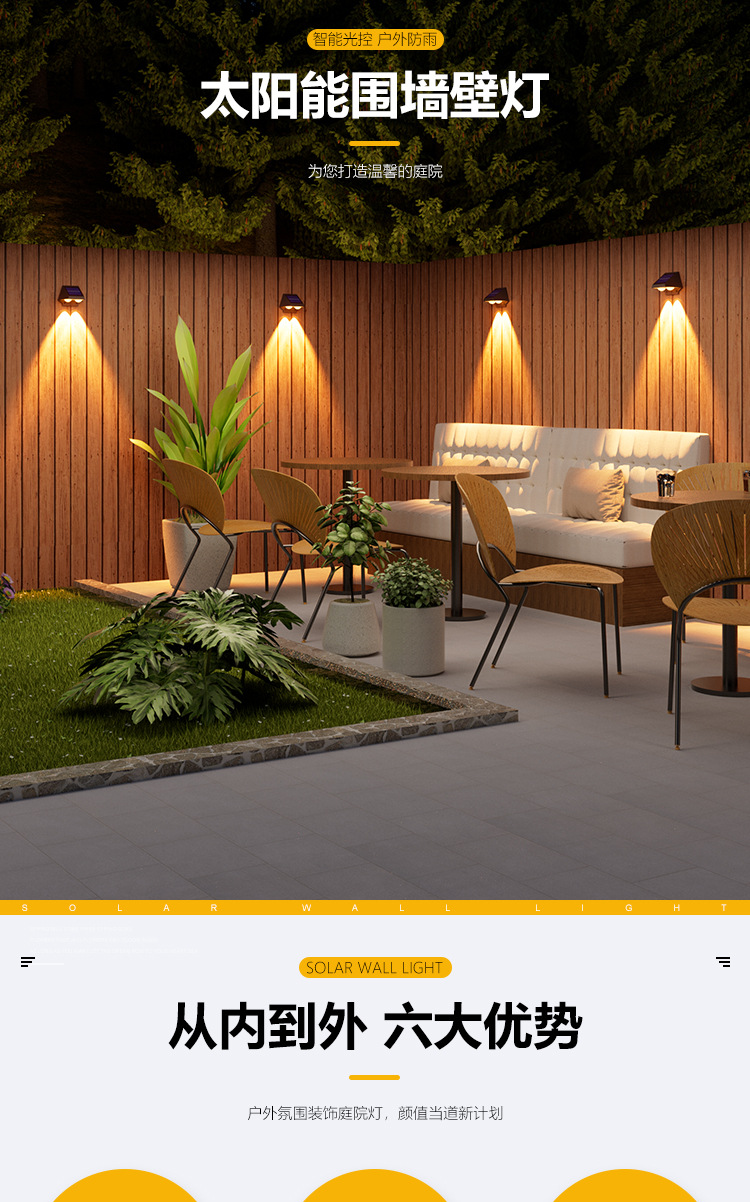 太阳能洗墙灯庭院户外灯阳台氛围灯花园防水照明灯简约装饰灯射灯