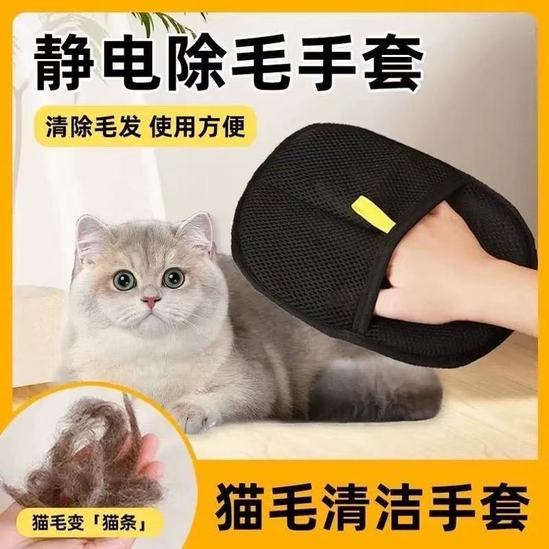 宠物静电除毛手套双向刷毛粘毛除毛神器猫狗养宠必备手套猫毛清理
