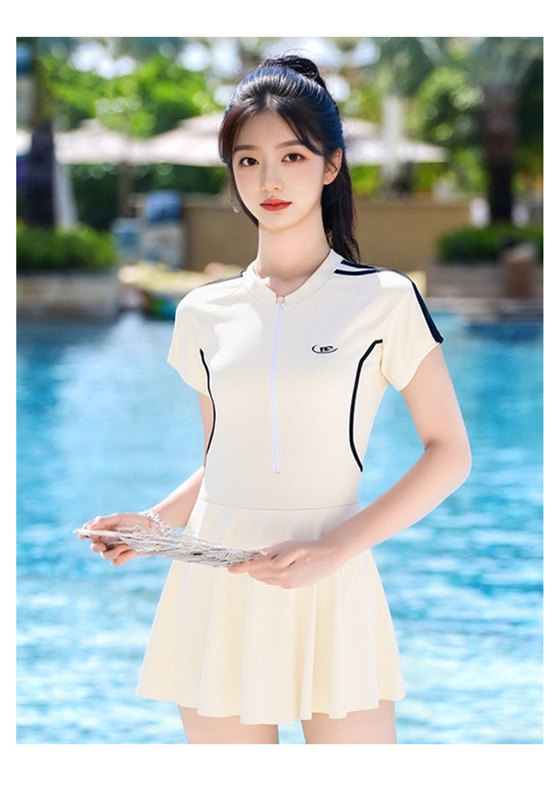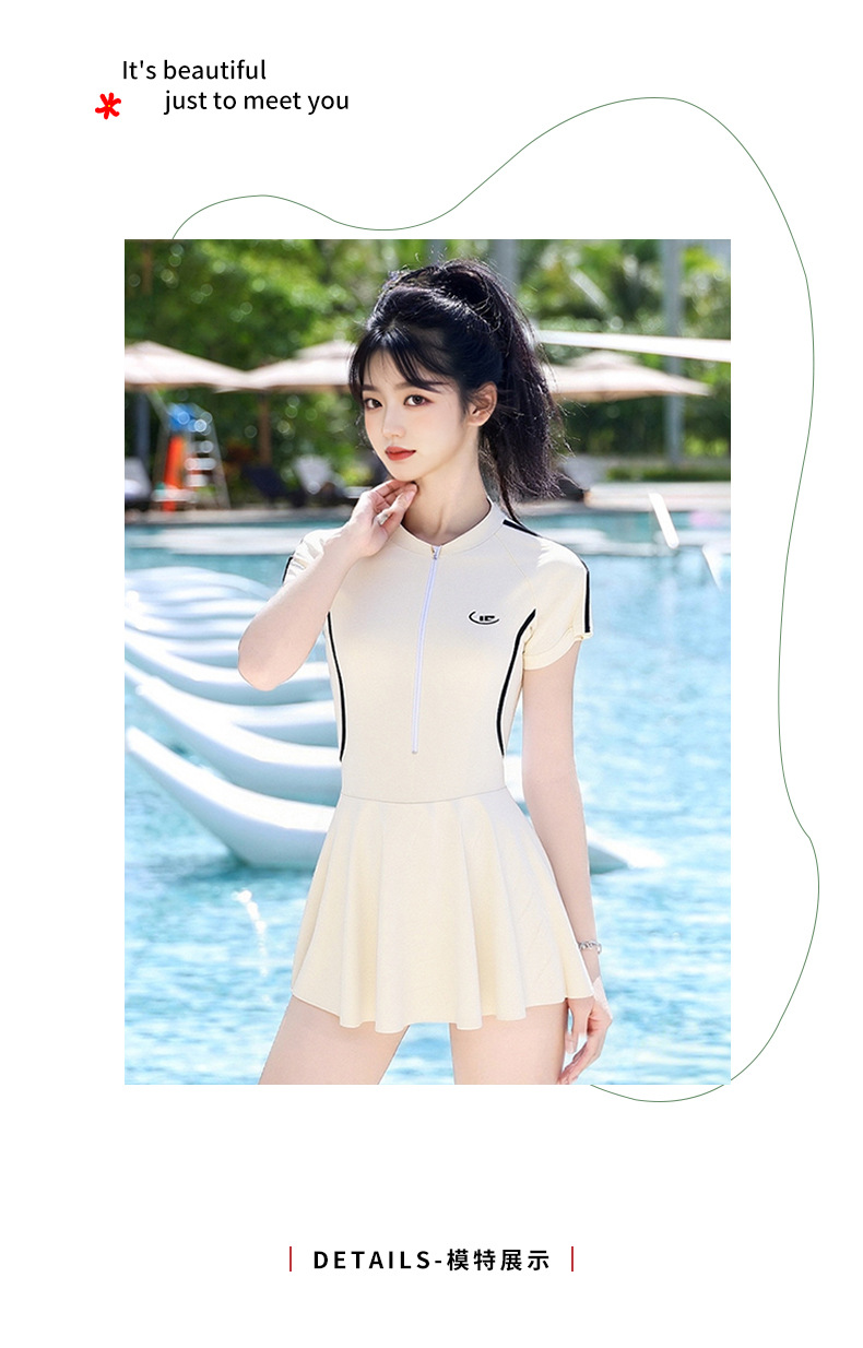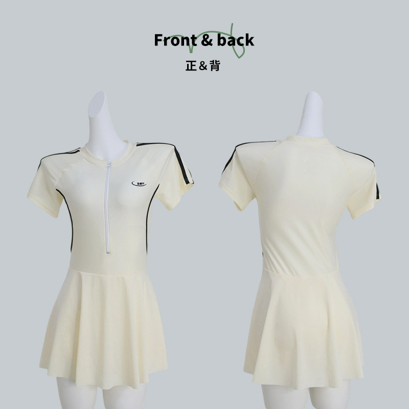 运动少女涤纶泳衣女连体裙式ins风保守显瘦遮肚温泉2026新款泳装