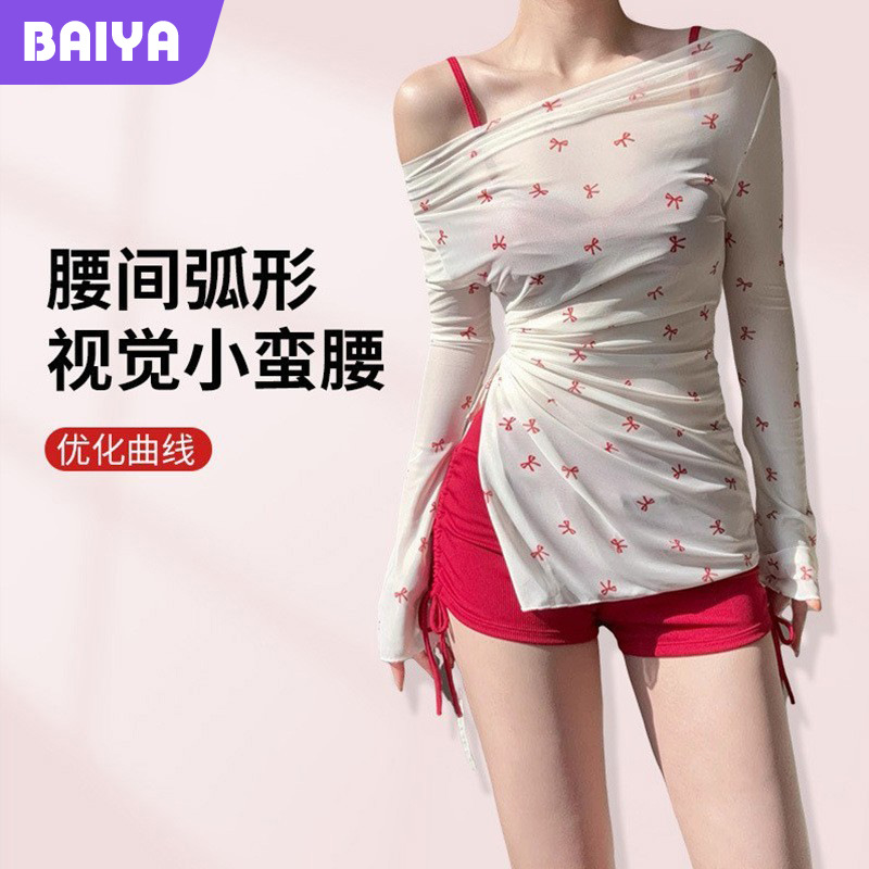 2025 新しい水着女性の純粋な欲望スタイル長袖日焼け止めブラウスホルタービキニスプリットストラップ水着