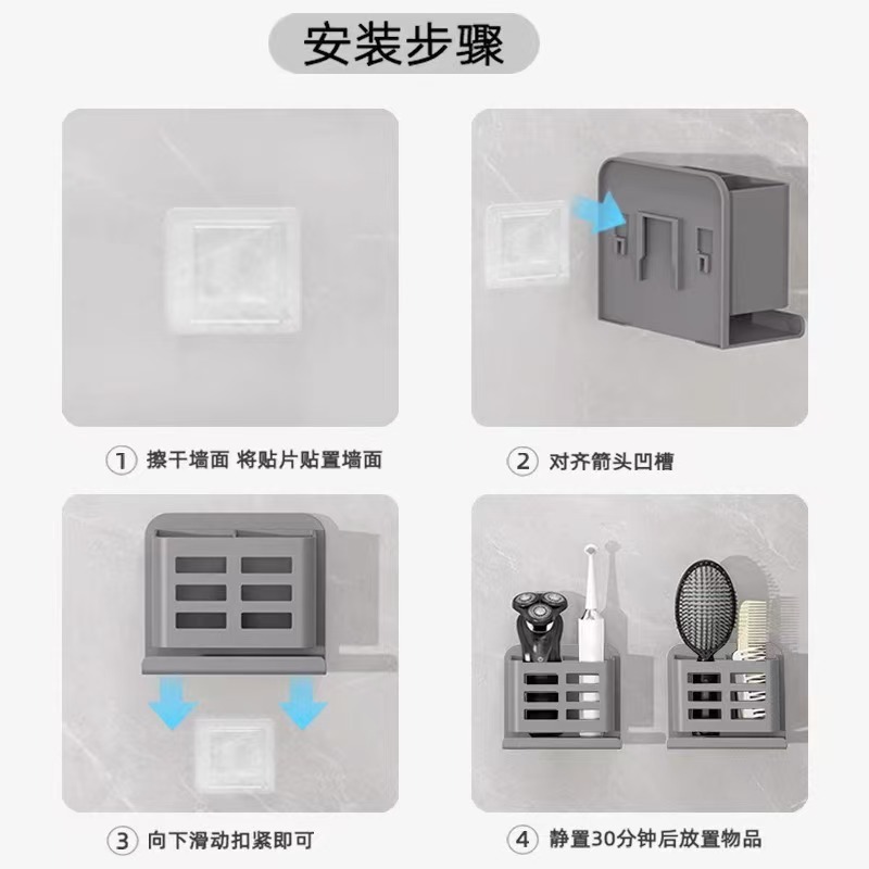 免打孔梳子置物架收纳筒盒浴室卫生间洗漱台放牙刷牙膏剃须刀壁挂
