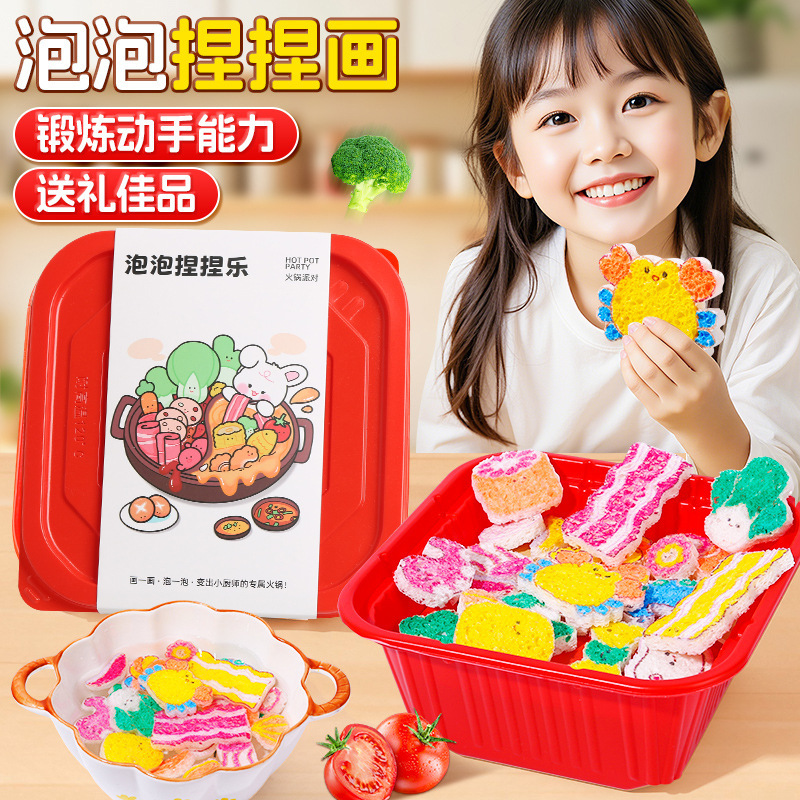 魔法の鍋の泡は子供の台所のおもちゃの益智をつまんで描きます。