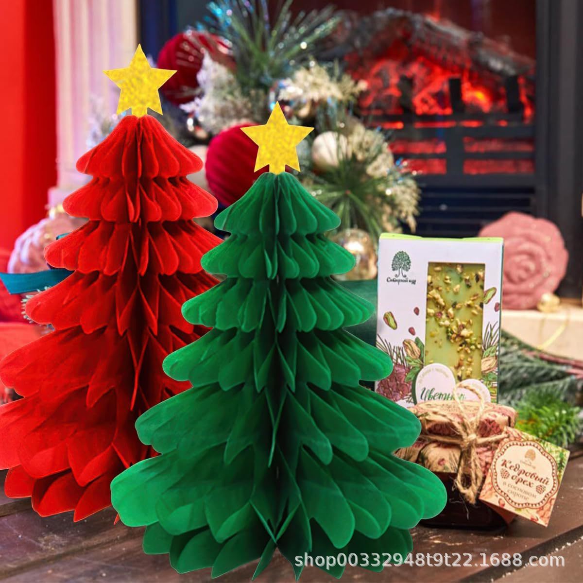 跨境圣诞树蜂窝桌摆创意圣诞树家居桌面装饰摆件节日气氛布置道具