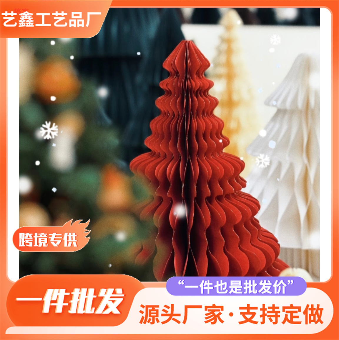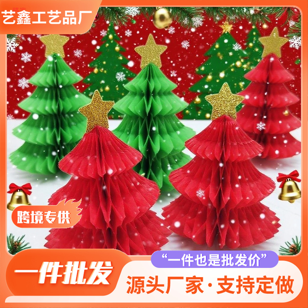 圣诞节装饰品立体蜂窝纸质折叠小圣诞树桌面摆件橱窗氛围场景布置