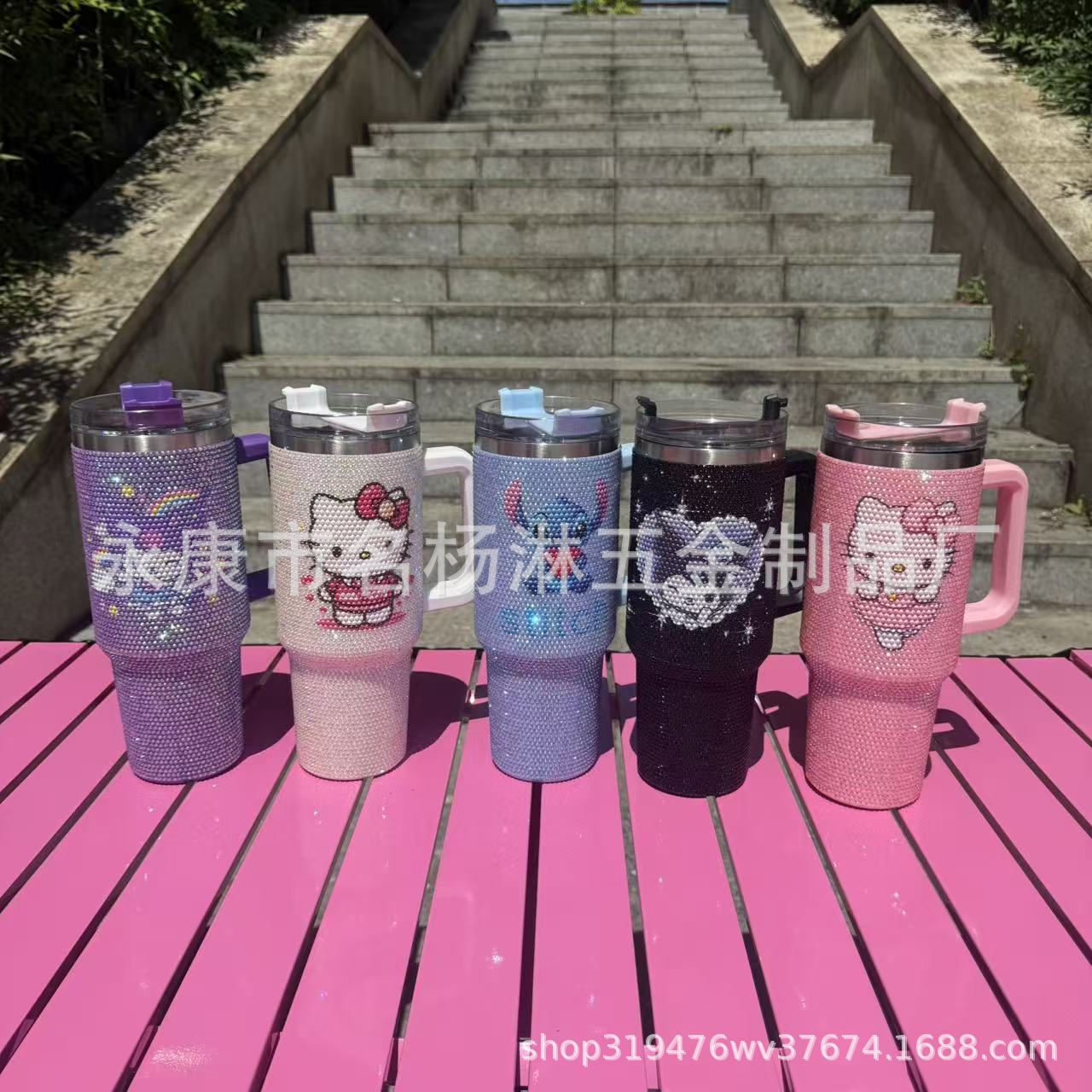 跨境新款40oz镶钻杯车载大容量不锈钢贴钻卡通40吸管冰霸杯