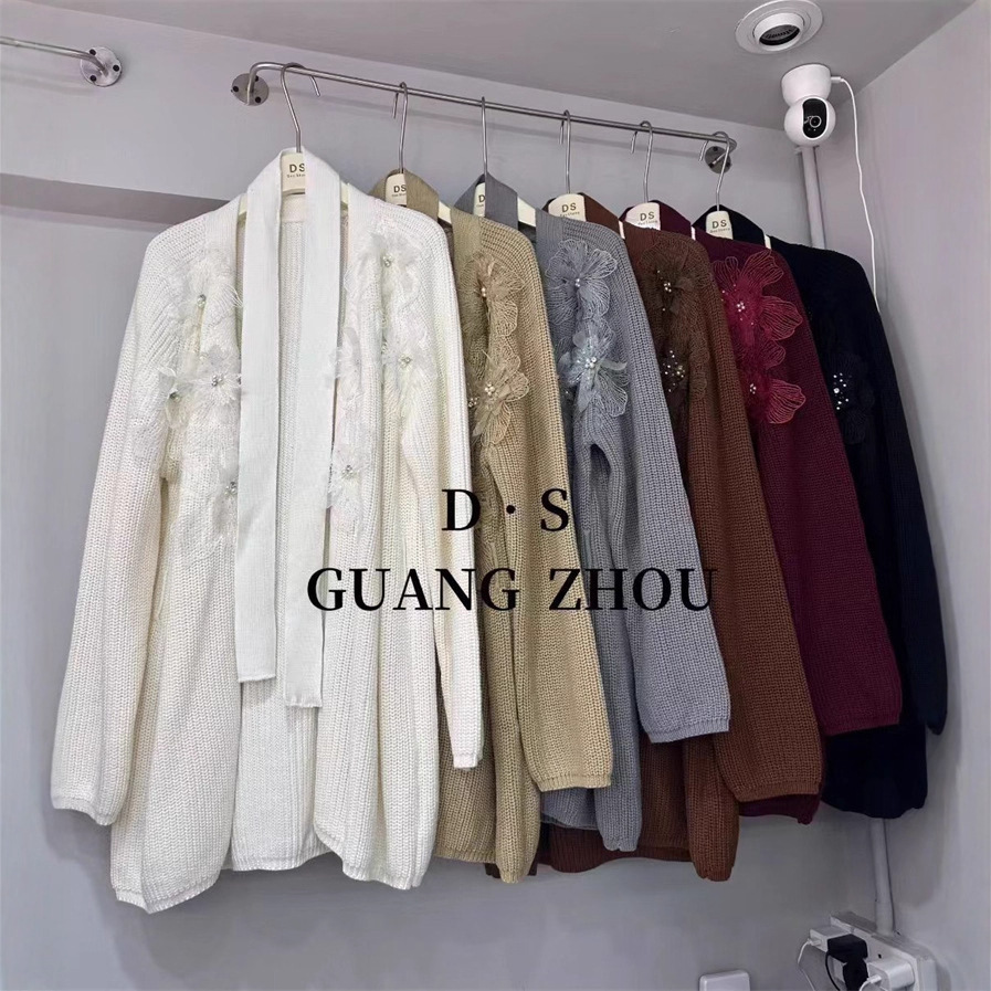 重工亮片花朵刺绣加厚针织开衫秋冬新款慵懒风宽松系带毛衣外套潮