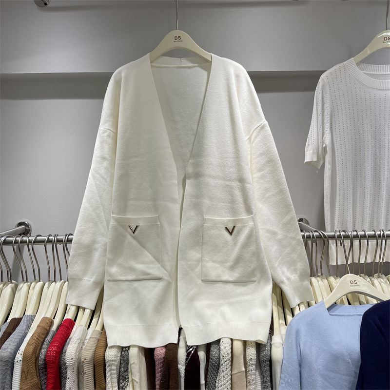 欧货重工亮片钉珠V领毛衣外套女秋冬新款慵懒风宽松长款针织开衫