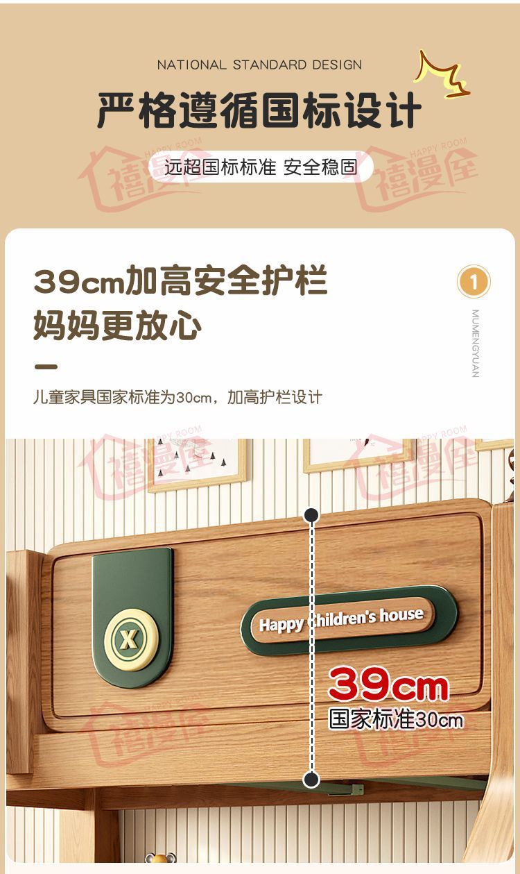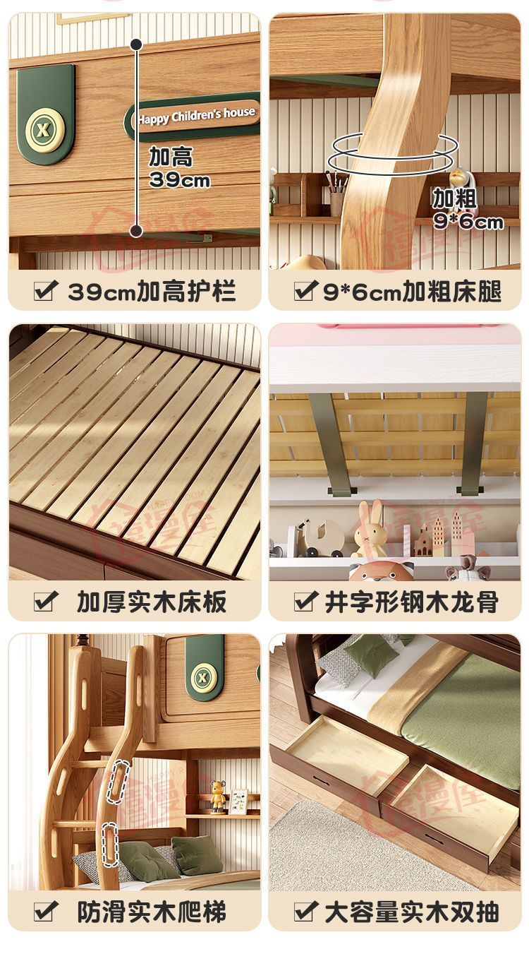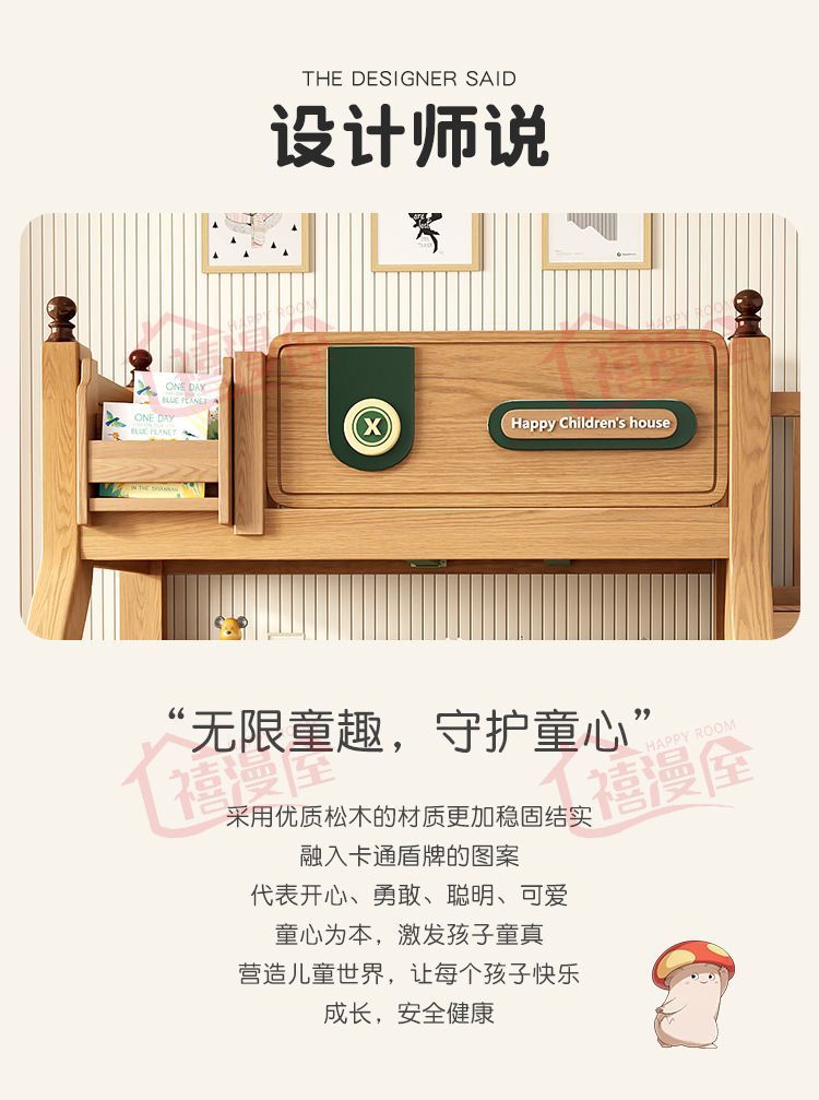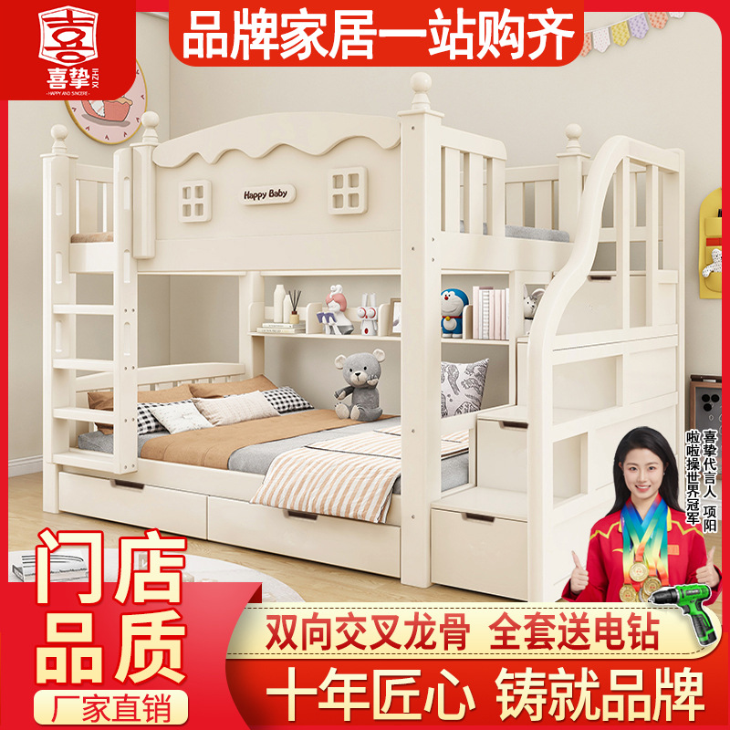 禧漫屋实木儿童上下床加粗加厚男孩女孩双层床美式床小户型高低床