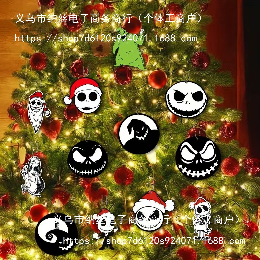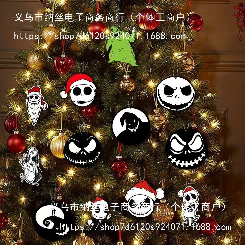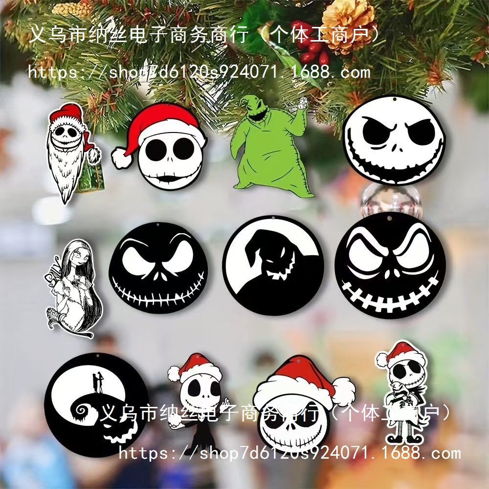 圣诞夜惊魂装饰品圣诞树装饰万圣节木制装饰品圣诞树前夜派对挂饰