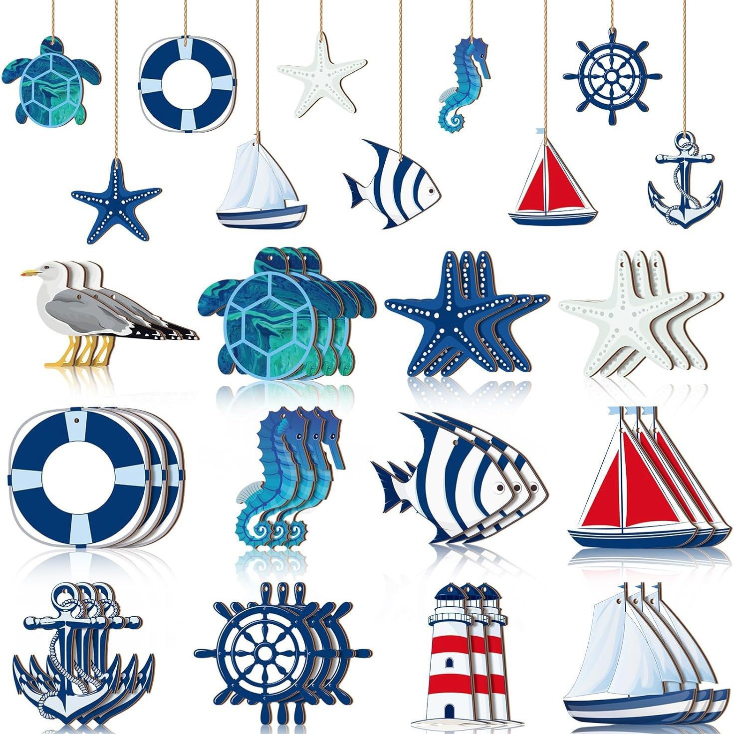 海洋主题装饰贝壳海马挂饰航海海洋木质装饰圣诞树装饰品家居