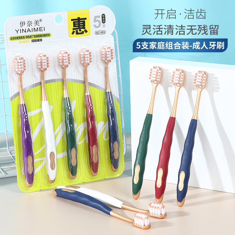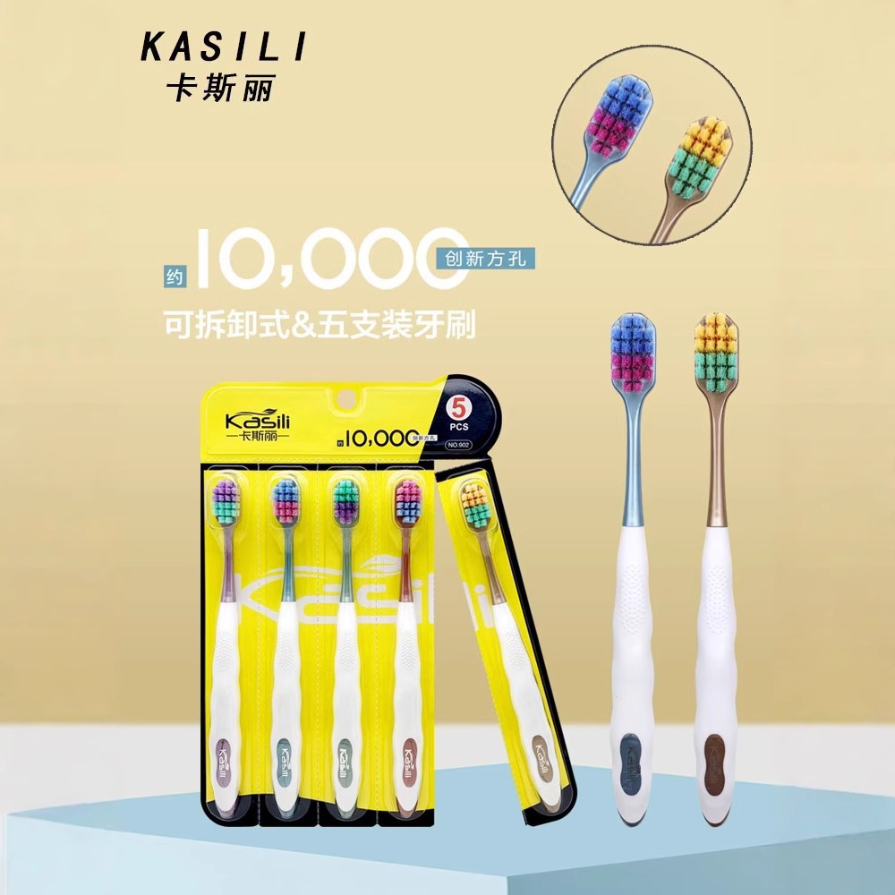【卡斯丽】5支成人家庭独立可拆卸牙刷细毛包装柔软万毛宽头软毛