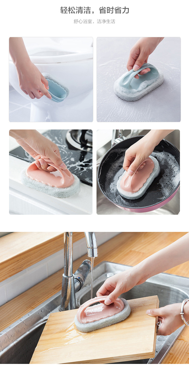 家用瓷砖清洁刷北欧厨房带手柄海绵擦多功能素色浴缸灶台百洁刷