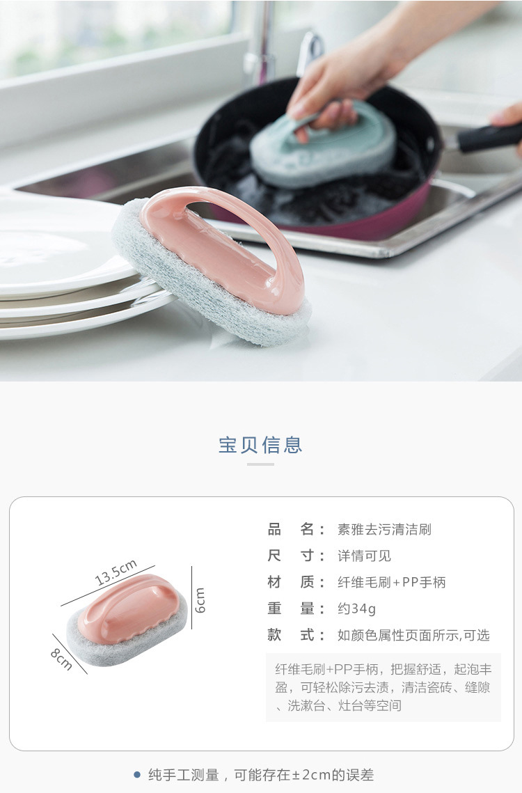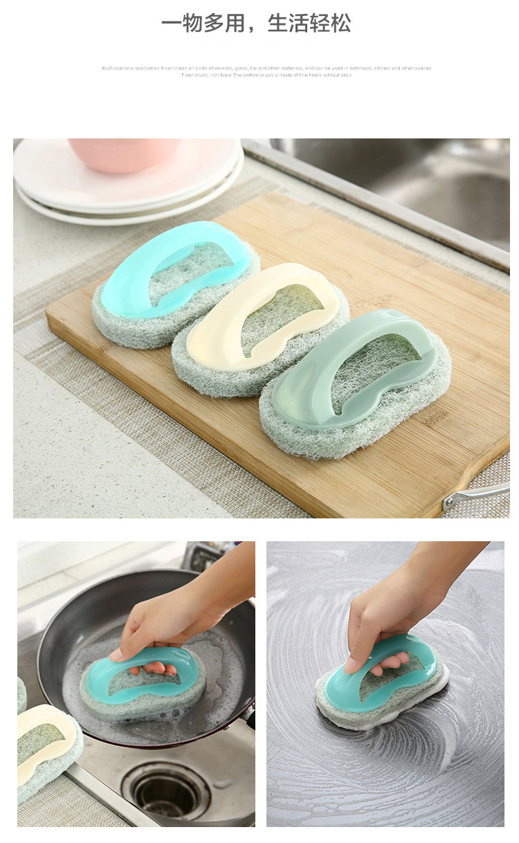 家庭用タイル洗浄ブラシ北欧キッチンハンドル付きスポンジ拭き多機能無地浴槽調理台百潔ブラシ