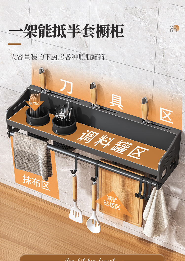 厨房置物架壁挂式免打孔墙上调料刀具筷子收纳架家用调味品多功能