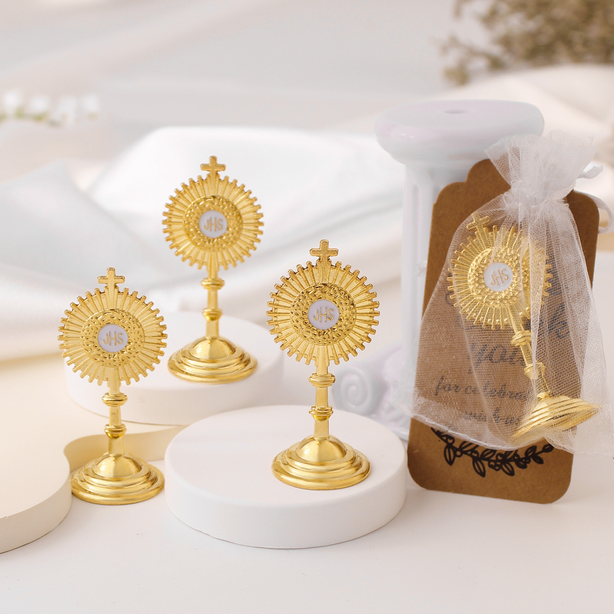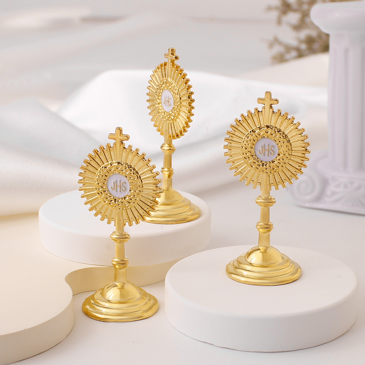 跨境欧式JHS金色十字架烛台摆件陈列家居办公工艺品金属圣杯饰品