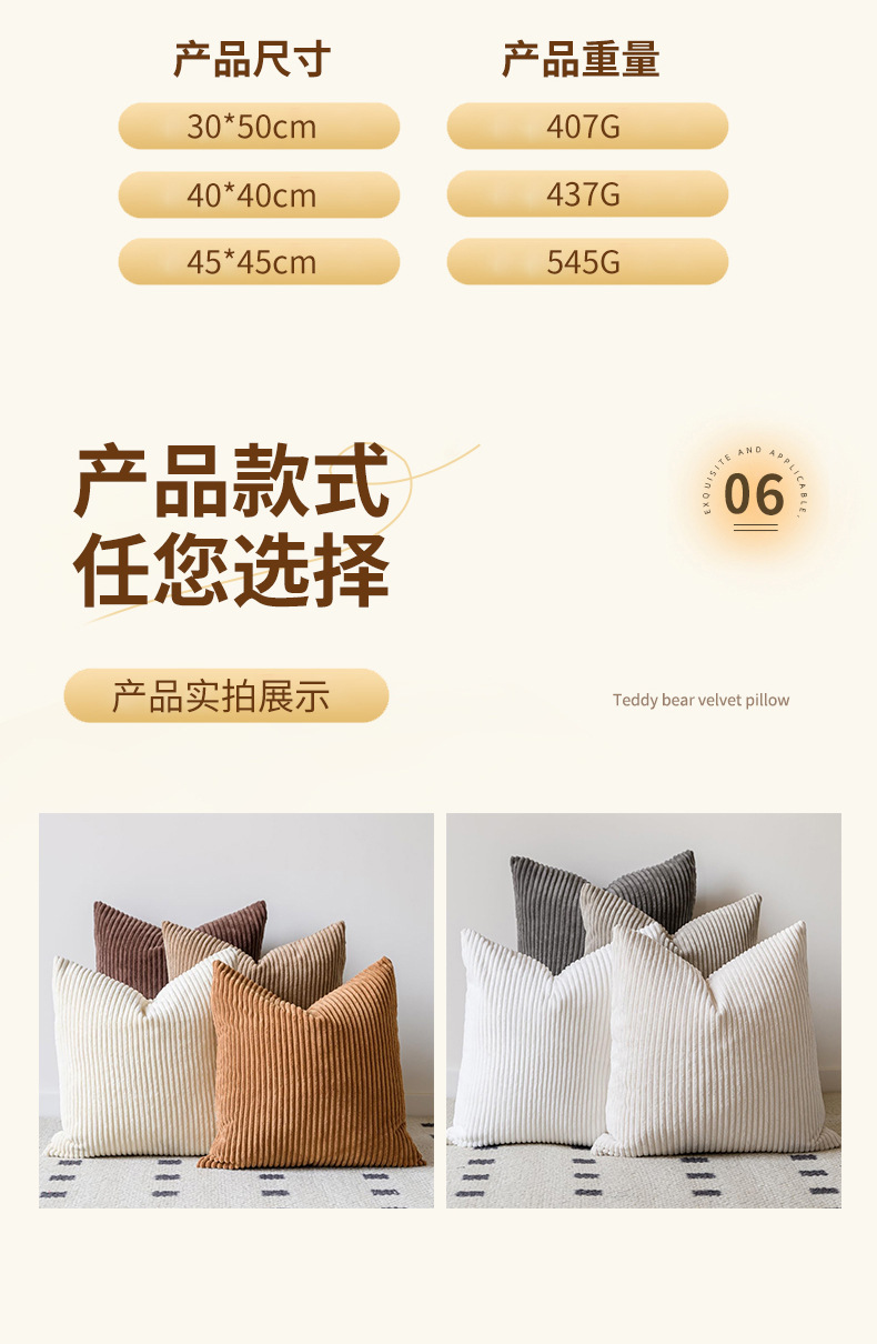 亚马逊北欧灯芯绒抱枕客厅沙发四件套组合纯色靠垫套床头靠枕靠背