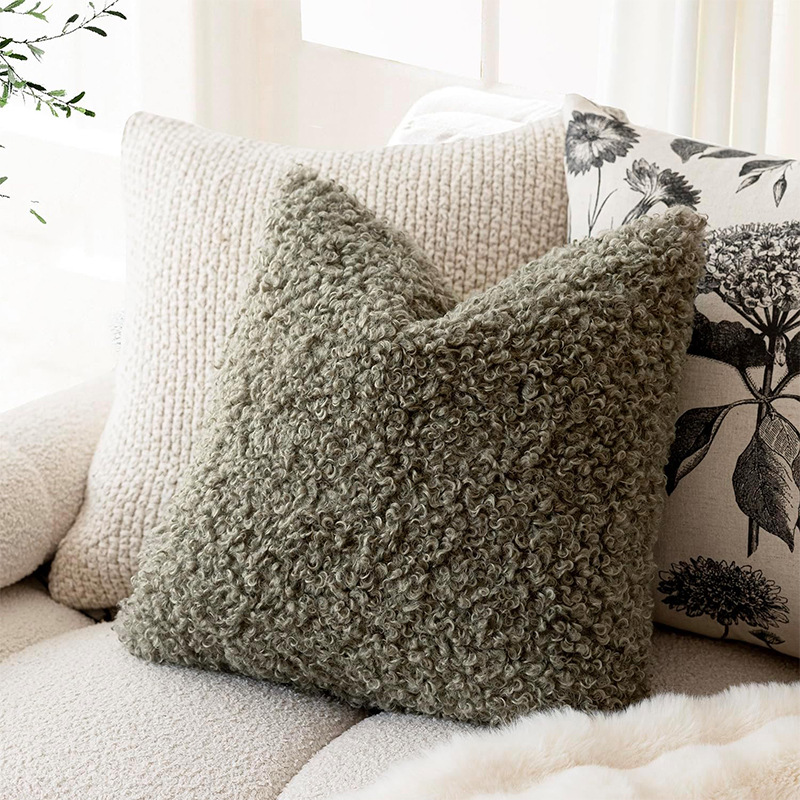 跨境批发小羊圈泰迪绒抱枕高级样板房别墅沙发轻奢靠枕腰枕抱枕套