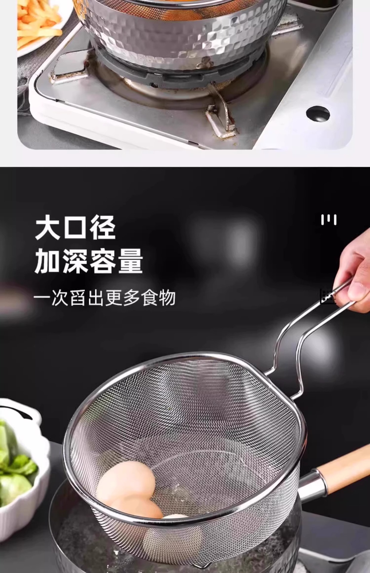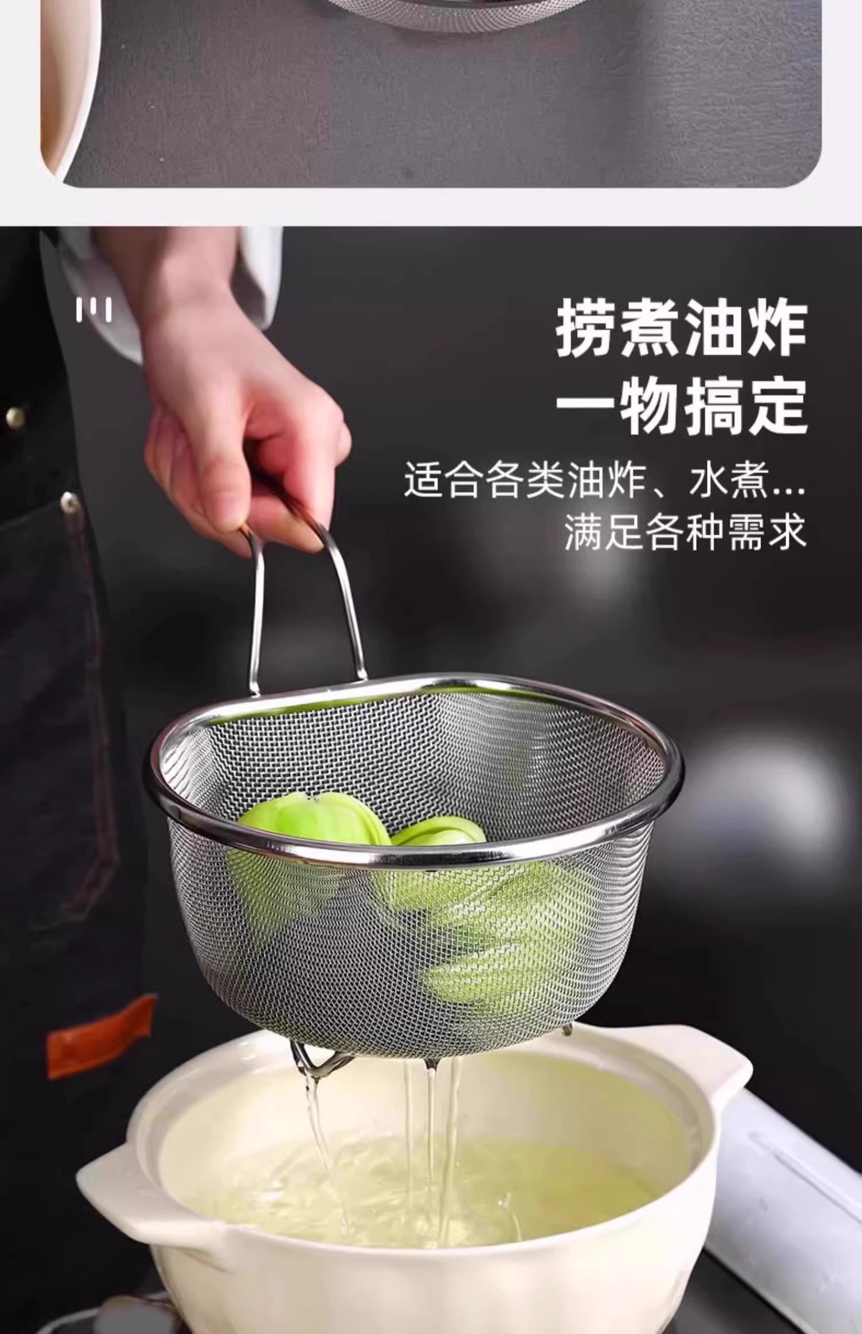 304不锈钢大漏勺过滤网厨房煮面漏网挂壁油炸篮家用烫菜焯水滤油